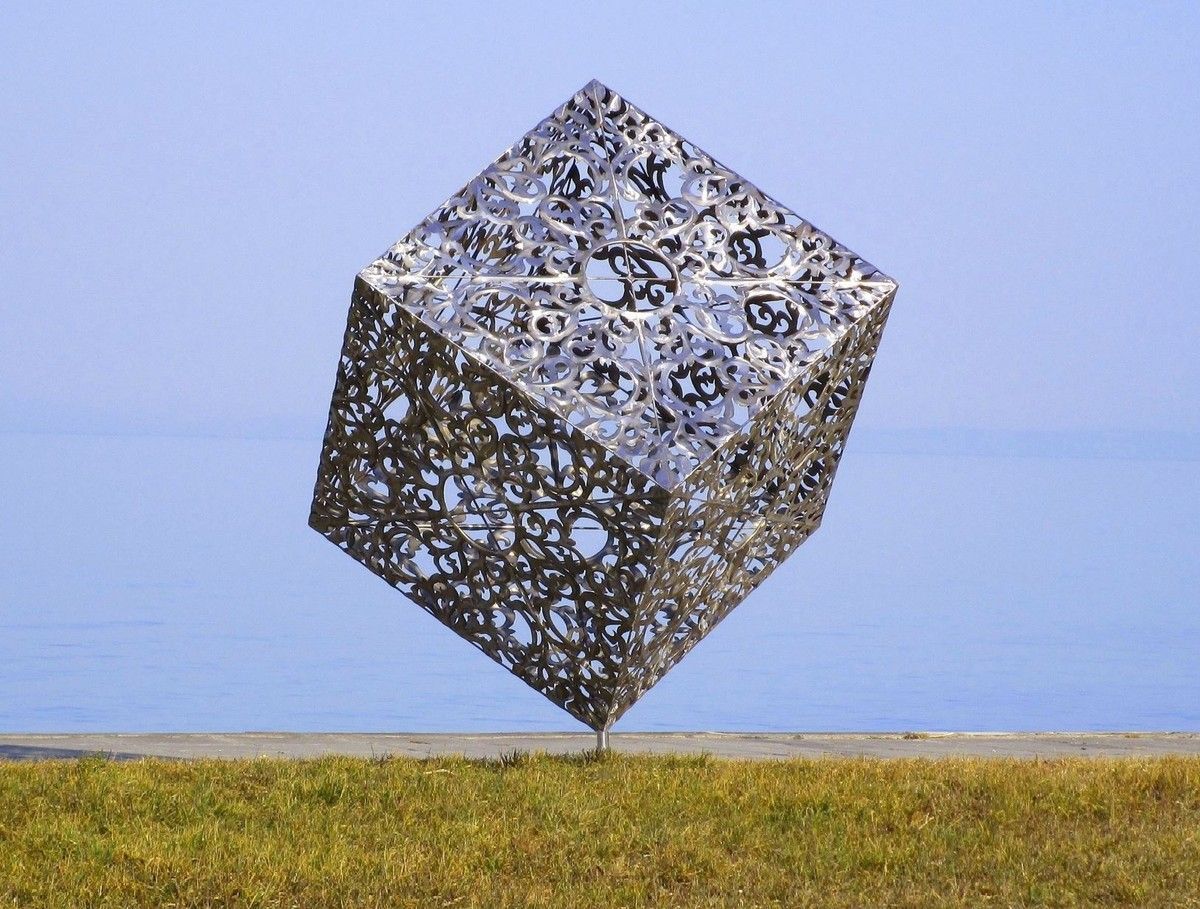 Casa Padrino Luxus Edelstahl Garten Skulptur Würfel Silber 150 x 130 x H. 170 cm - Ha