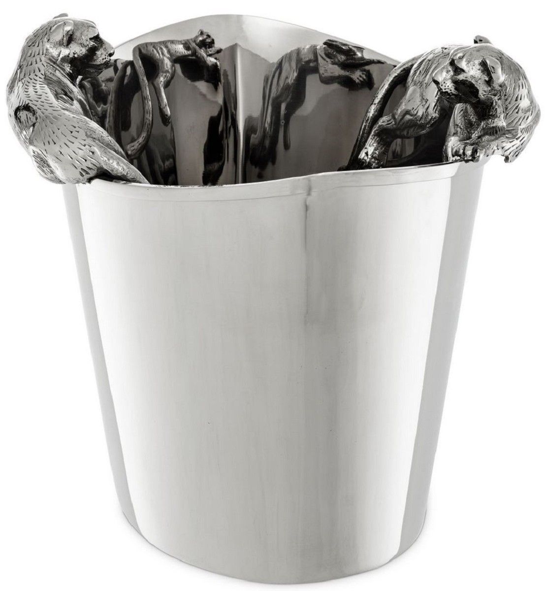 Casa Padrino Luxus Edelstahl Weinkühler mit 2 Messing Tragegriffen Silber 25,5 x 25,5