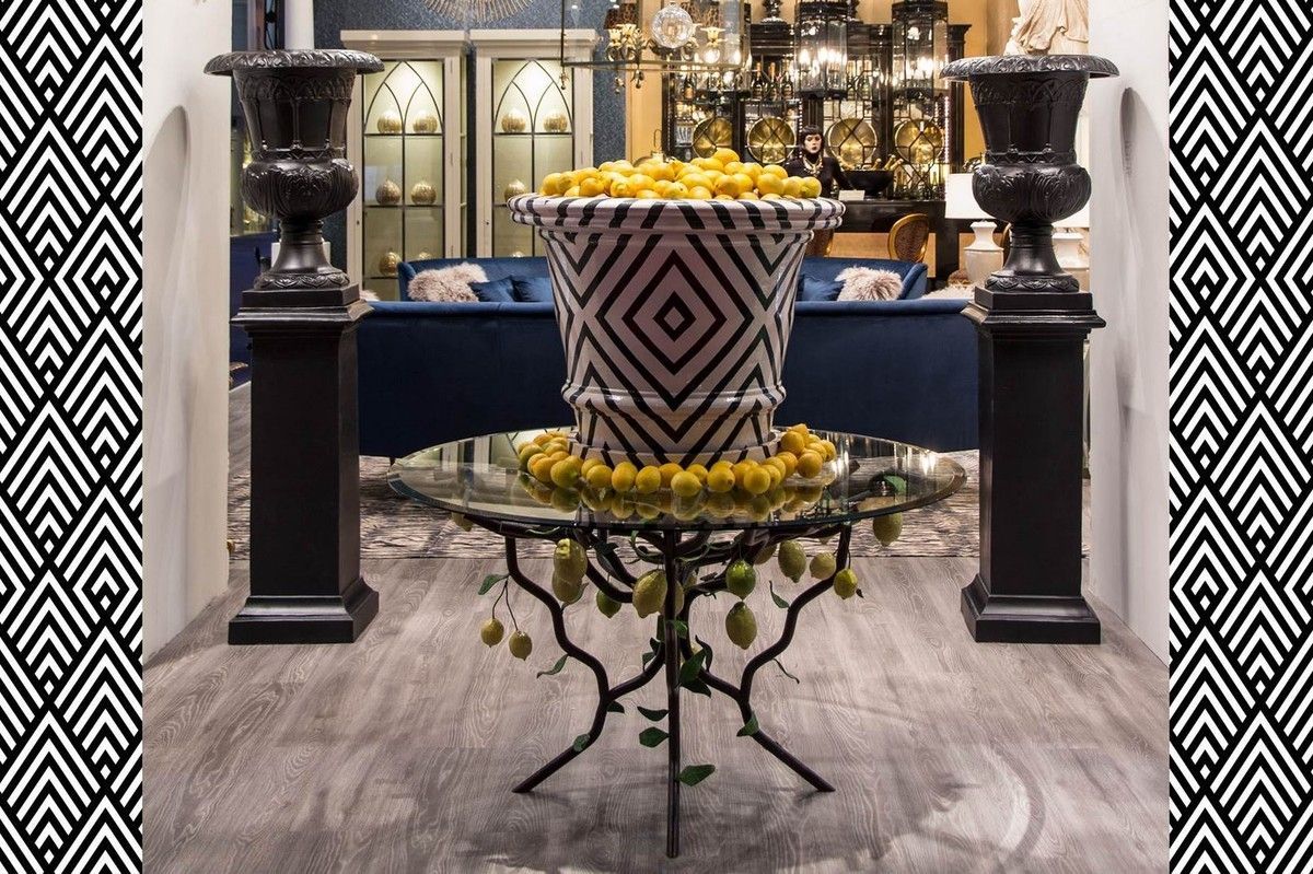 Casa Padrino Luxus Esstisch Schwarz / Gelb / Grün Ø 120 x H. 75 cm - Handgeschmiedete