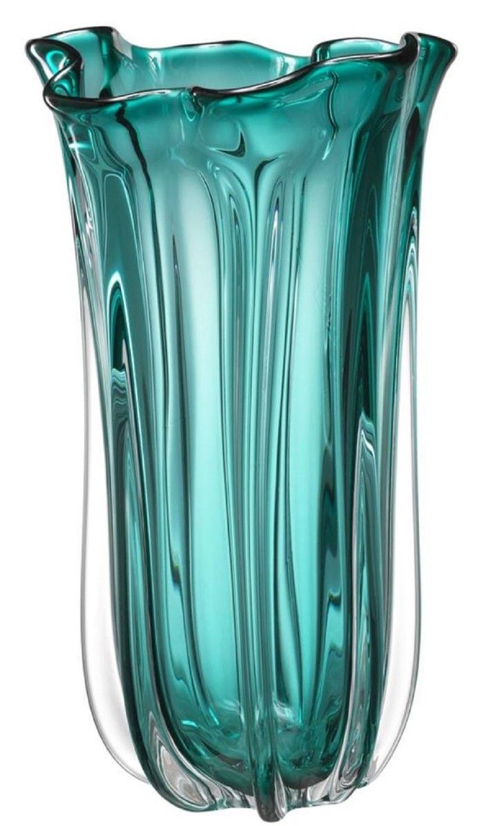 Casa Padrino Luxus Glas Vase / Blumenvase Türkis Ø 19 x H. 34 cm - Deko Accessoires