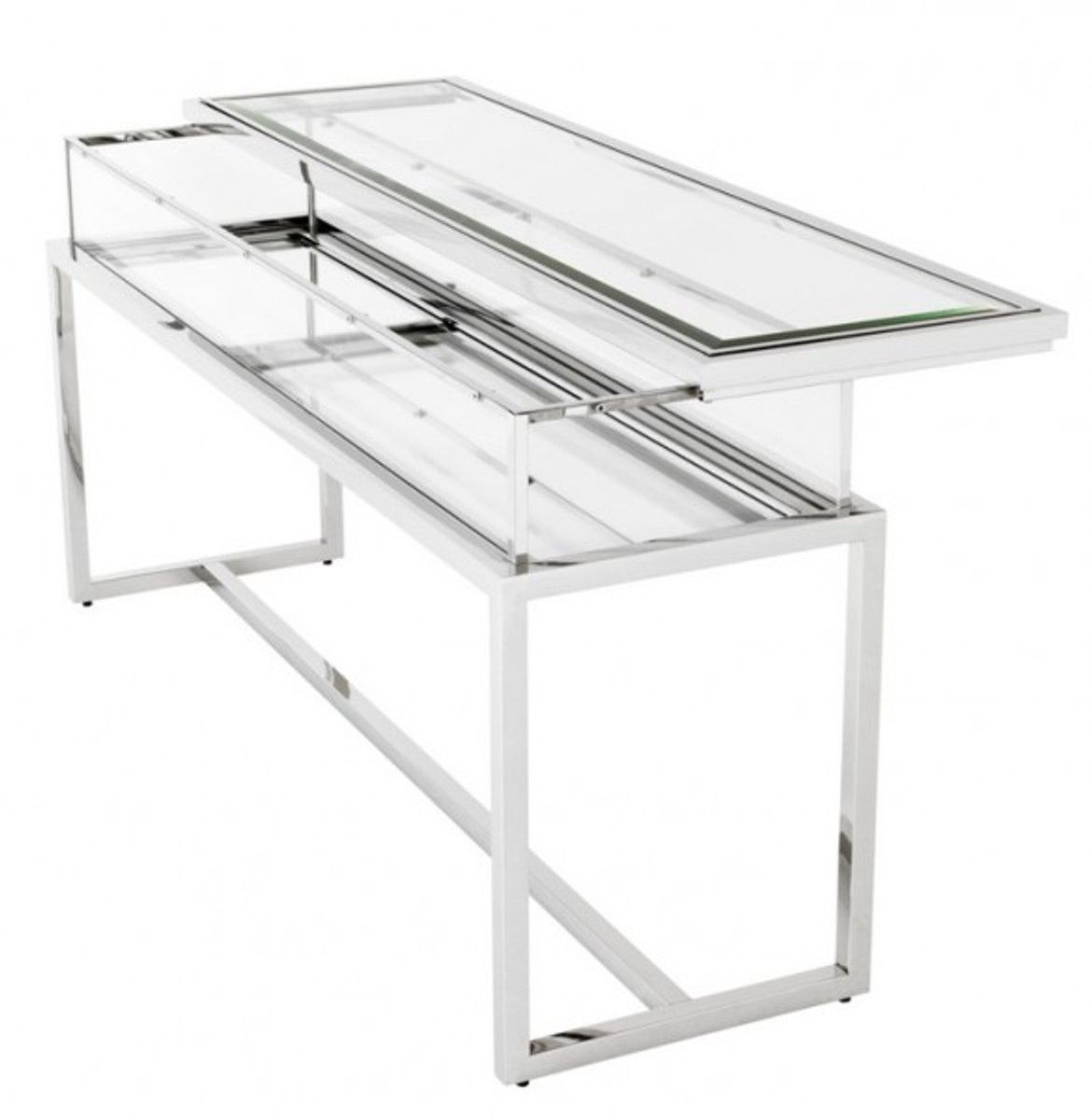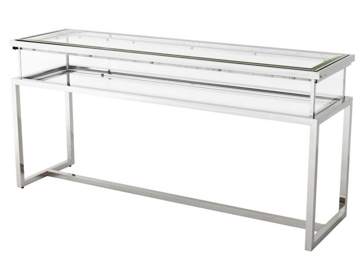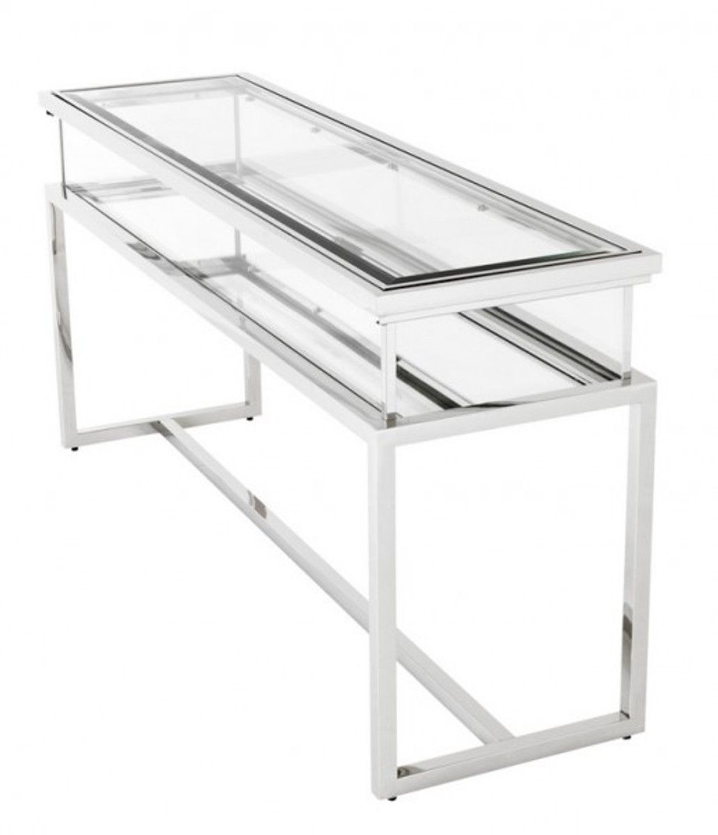 Casa Padrino Luxus Glas Vitrine Edelstahl Poliert B 160 x T 45 x H 77 cm Konsole Lade