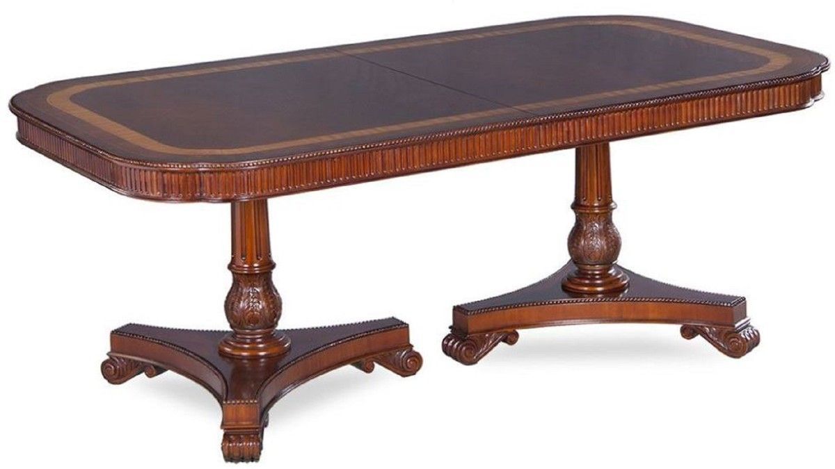 Casa Padrino Luxus Jugendstil Esstisch Braun / Dunkelbraun / Gold 212-312 x 115 x H
