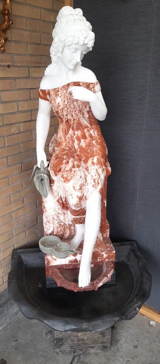 Casa Padrino Luxus Jugendstil Marmor Springbrunnen Dame Rot / Weiß / Grau / Schwarz