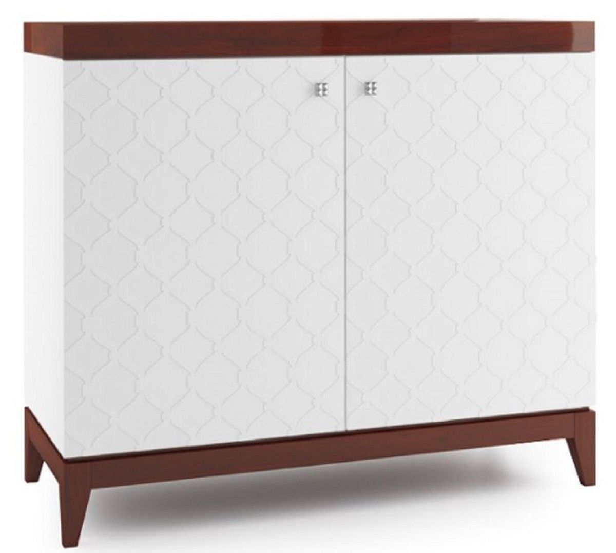 Casa Padrino Luxus Kommode mit 2 Türen Weiß / Hochglanz Braun 111,2 x 45 x H. 96,6 cm