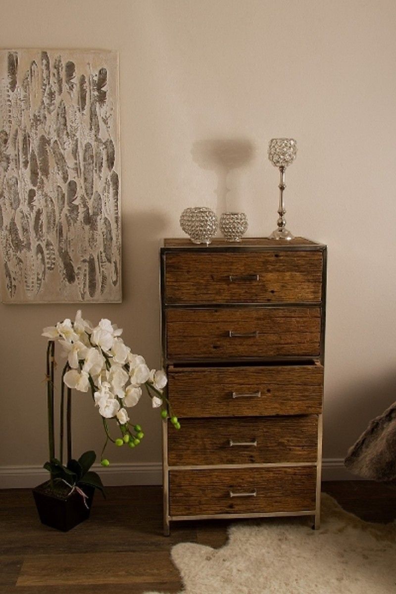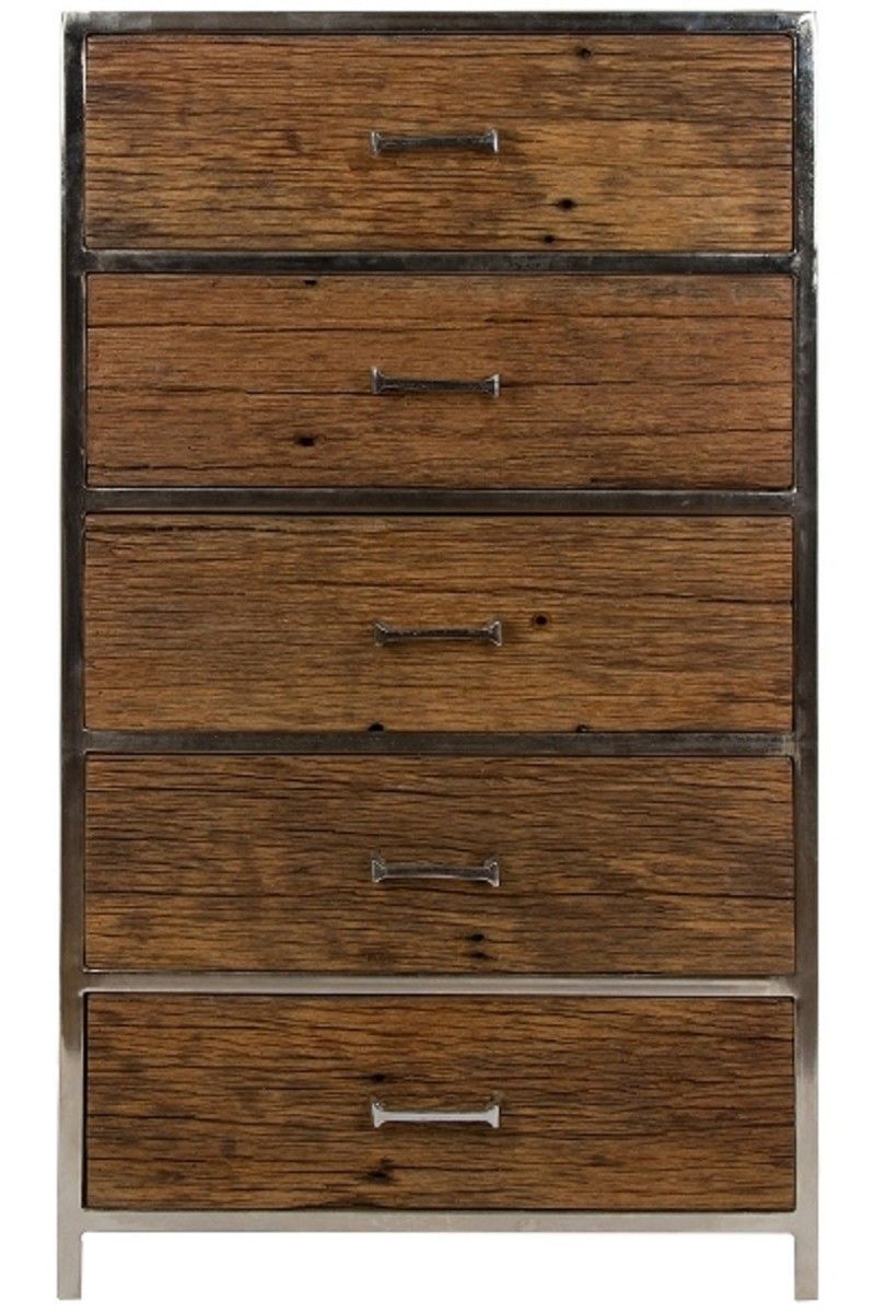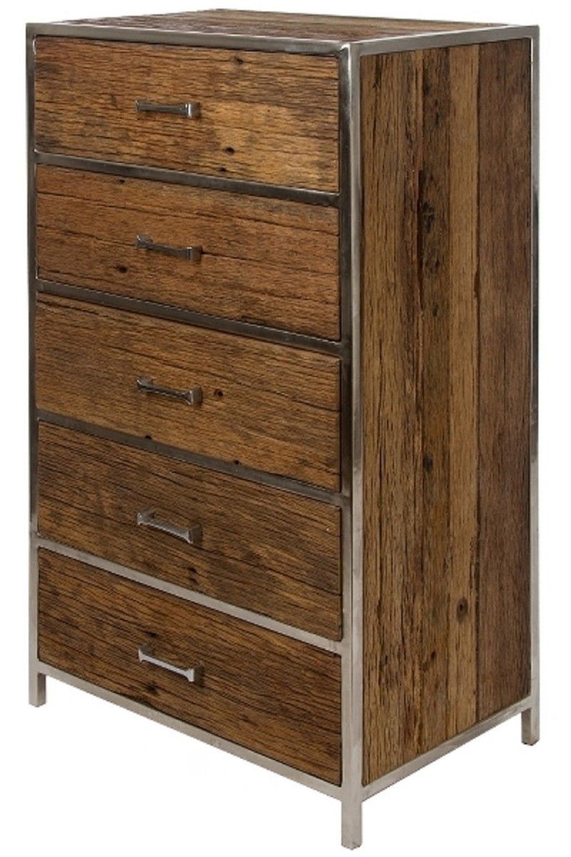 Casa Padrino Luxus Kommode mit 5 Schubladen Braun / Silber 60 x 40 x H. 110 cm - Luxu