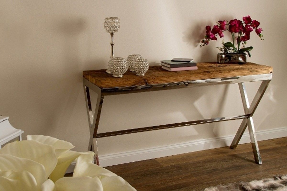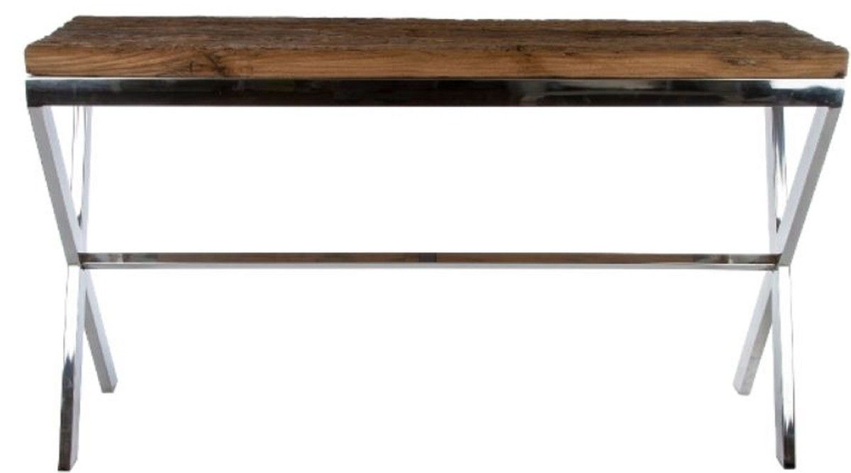 Casa Padrino Luxus Konsole Braun / Silber 140 x 40 x H. 80 cm - Konsolentisch mit rus
