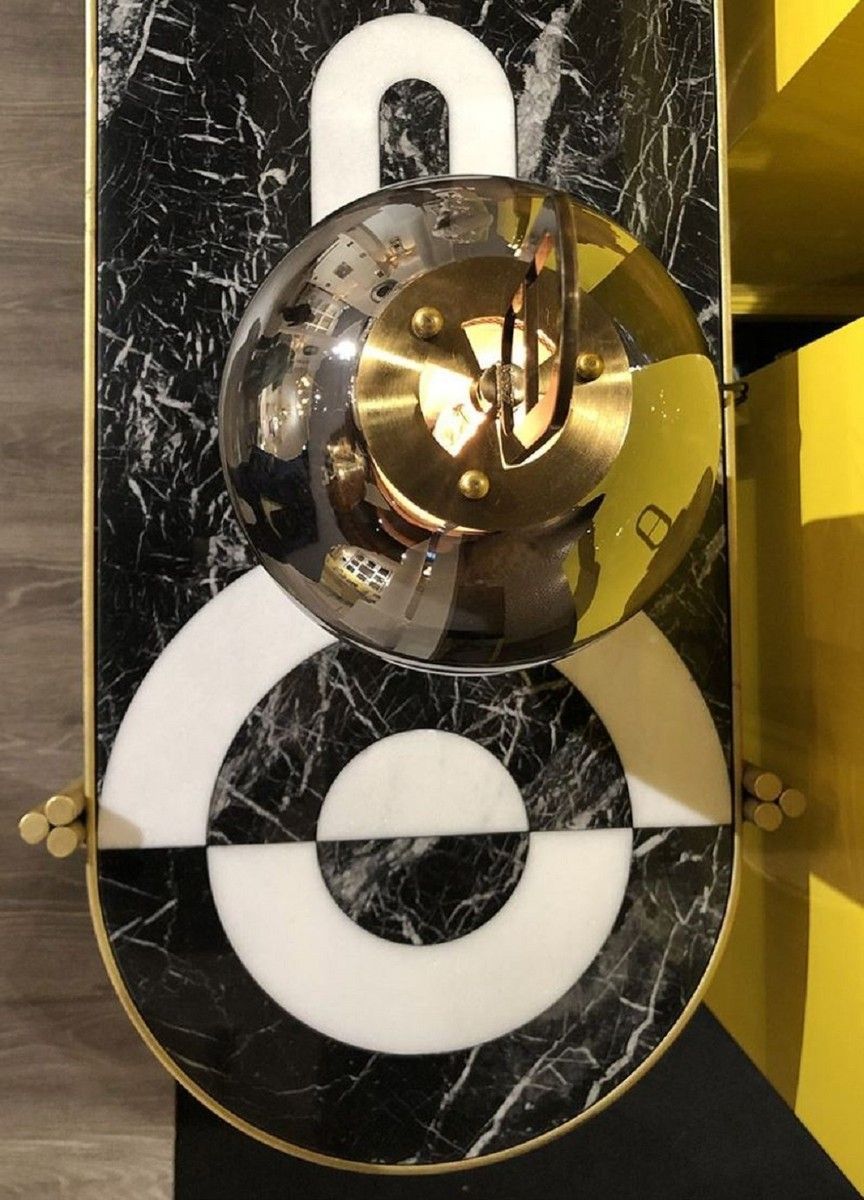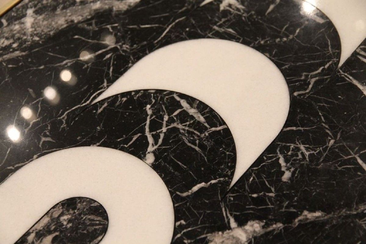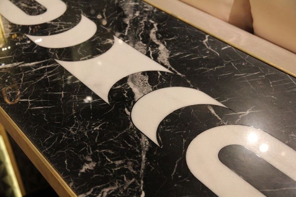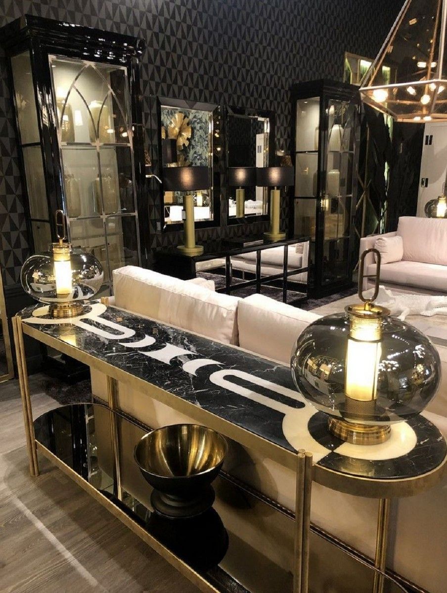 Casa Padrino Luxus Konsole Messingfarben / Schwarz / Weiß 220 x 45 x H. 85 cm - Konso