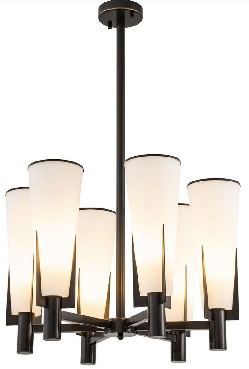 Casa Padrino Luxus Kronleuchter Bronzefarben / Weiß Ø 60 x H. 78 cm - Moderner Metall