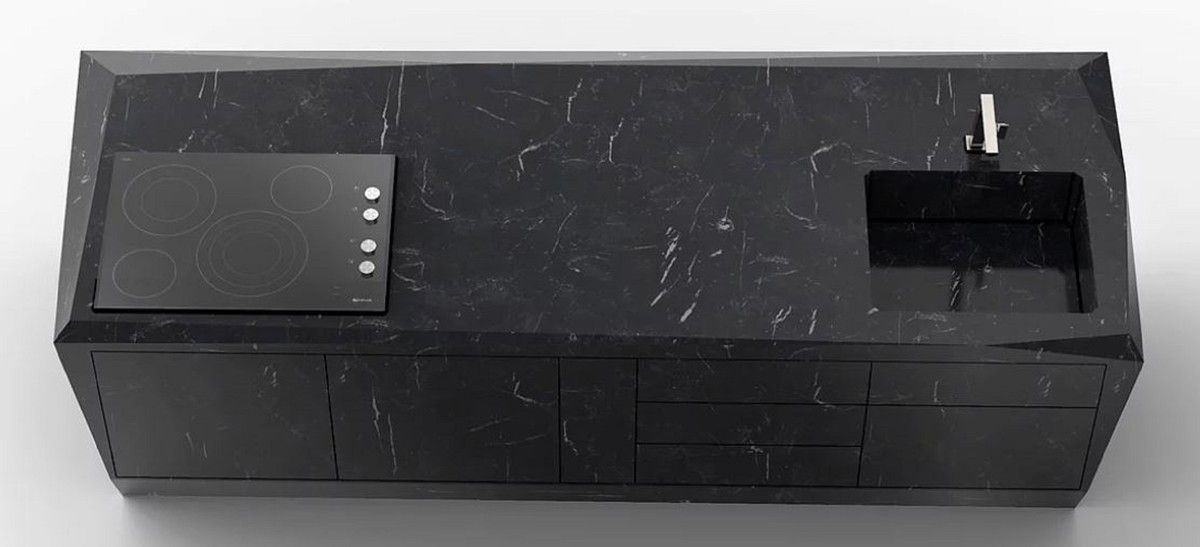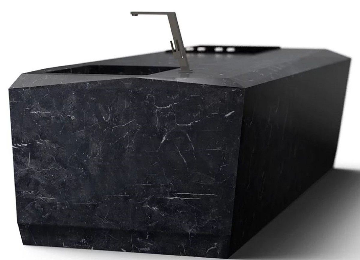 Casa Padrino Luxus Küchenblock aus hochwertigem Marquina Marmor Schwarz 270 x 100 x H