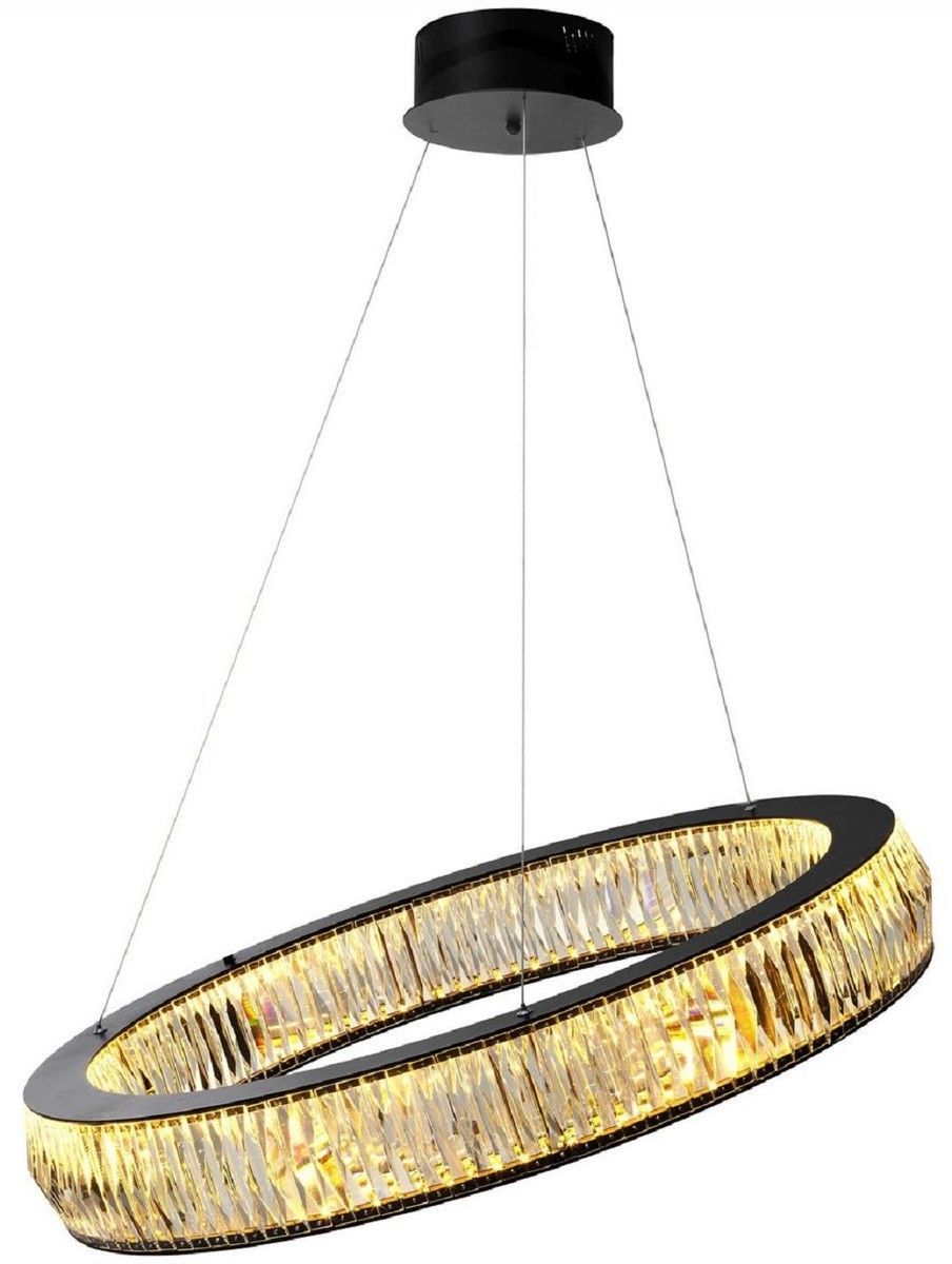 Casa Padrino Luxus LED Kronleuchter Schwarz Ø 91 x H. 13 cm - Moderner runder Kristal