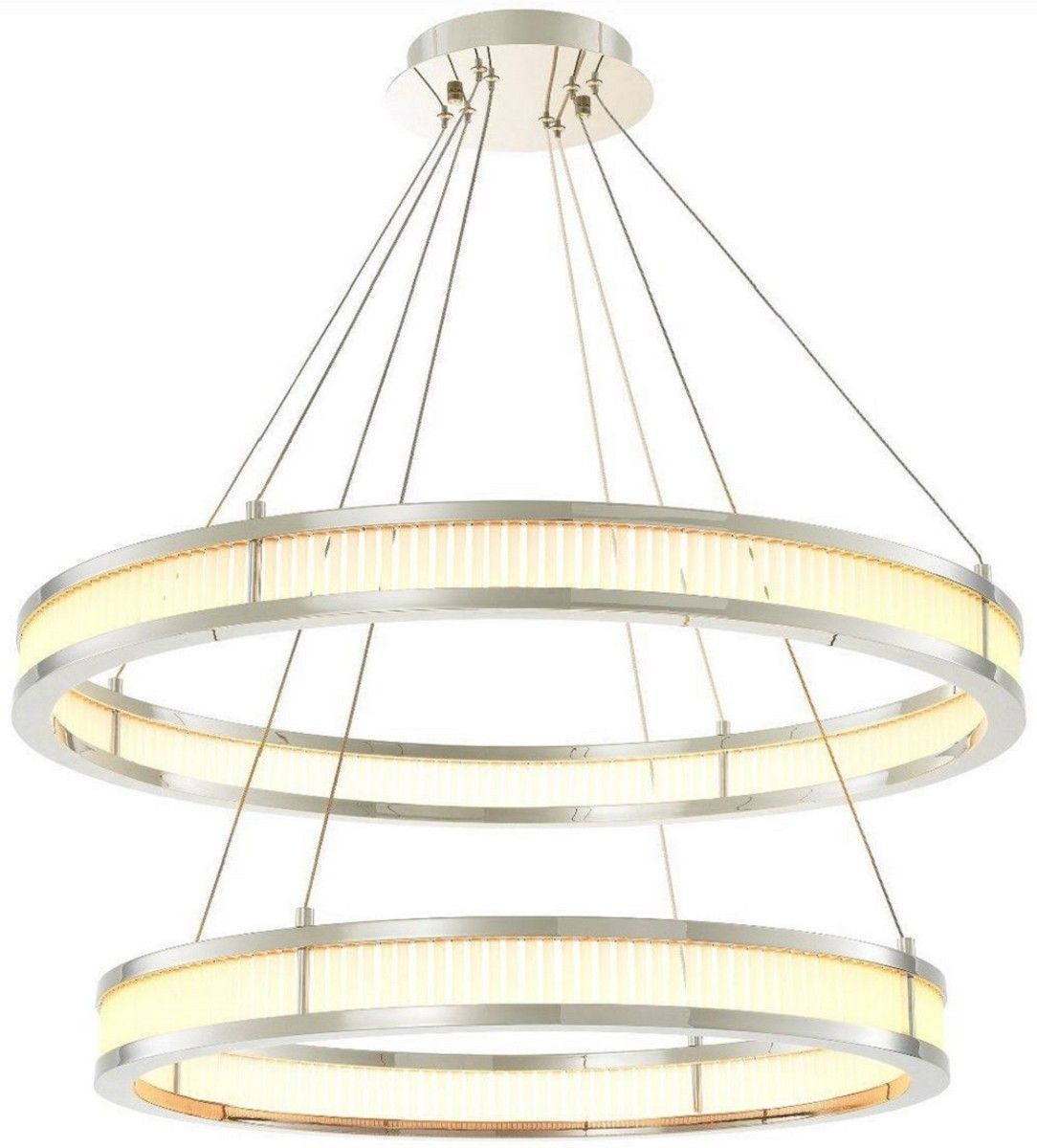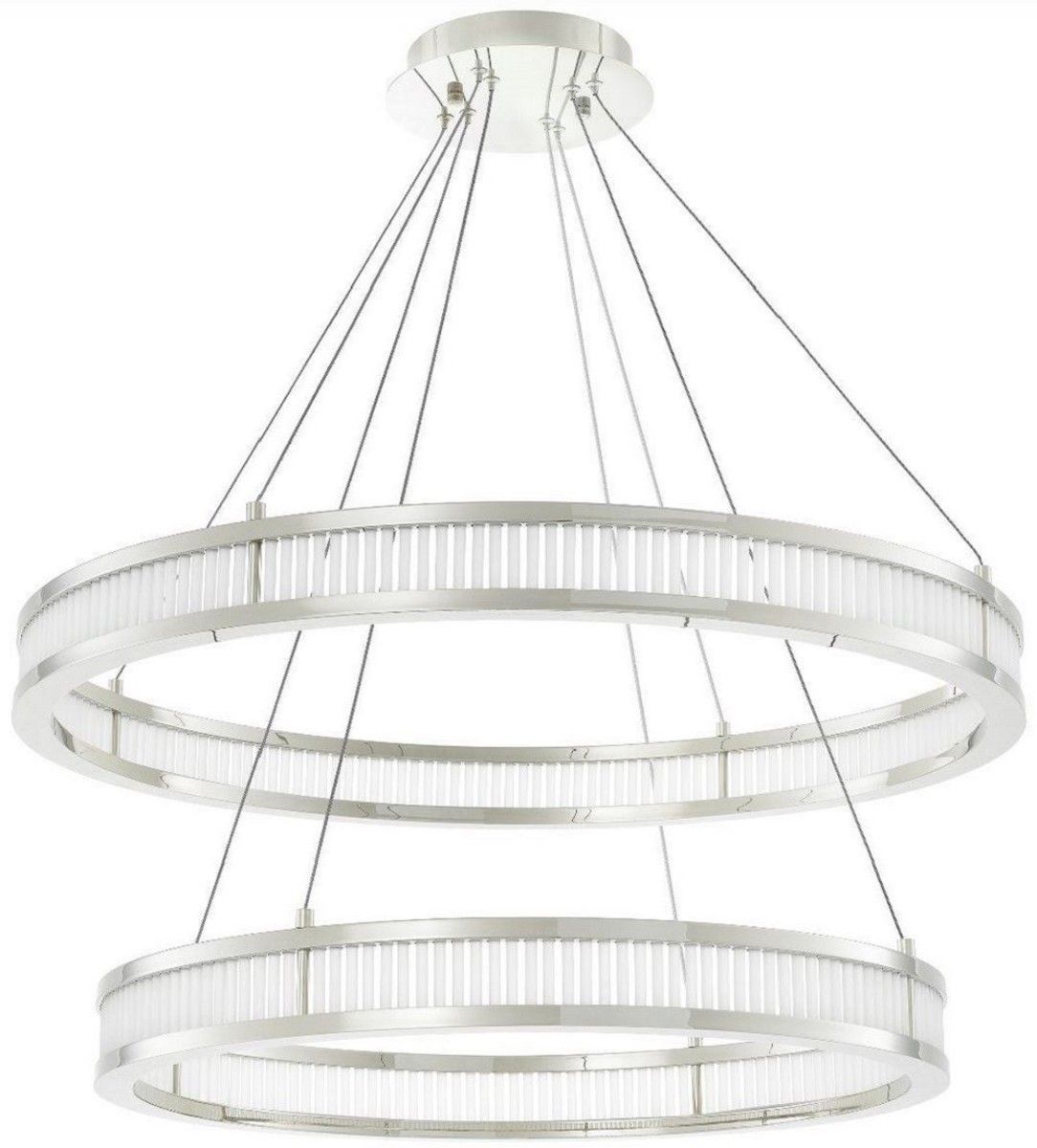 Casa Padrino Luxus LED Kronleuchter Silber / Weiß Ø 85 cm - Moderner runder Kronleuch