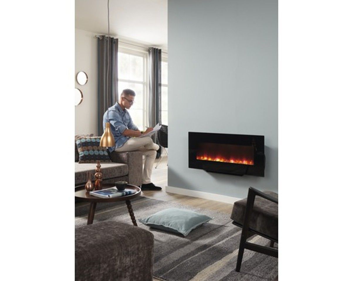 Casa Padrino Luxus LED Wandkamin Schwarz 98 x 45 cm - Elekro Wand Kamin