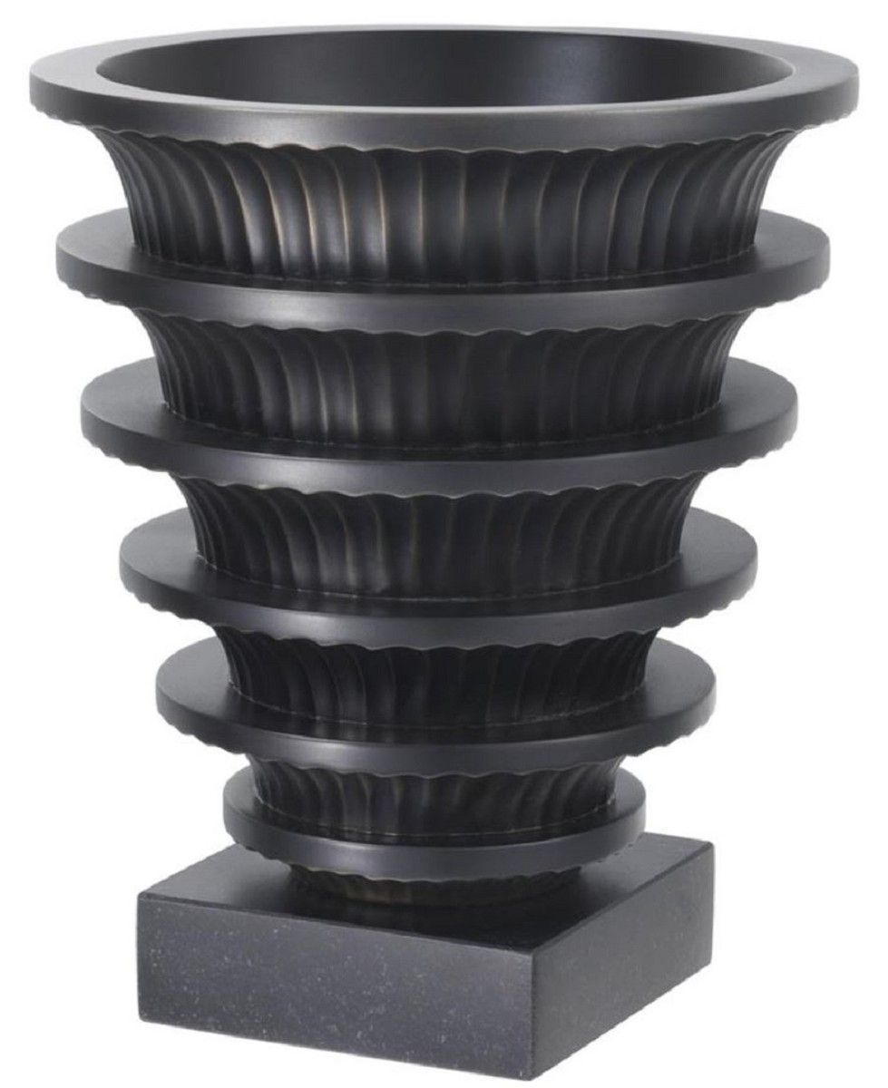 Casa Padrino Luxus Messing Vase mit Granitsockel Bronze / Schwarz Ø 19 x H. 22,3 cm