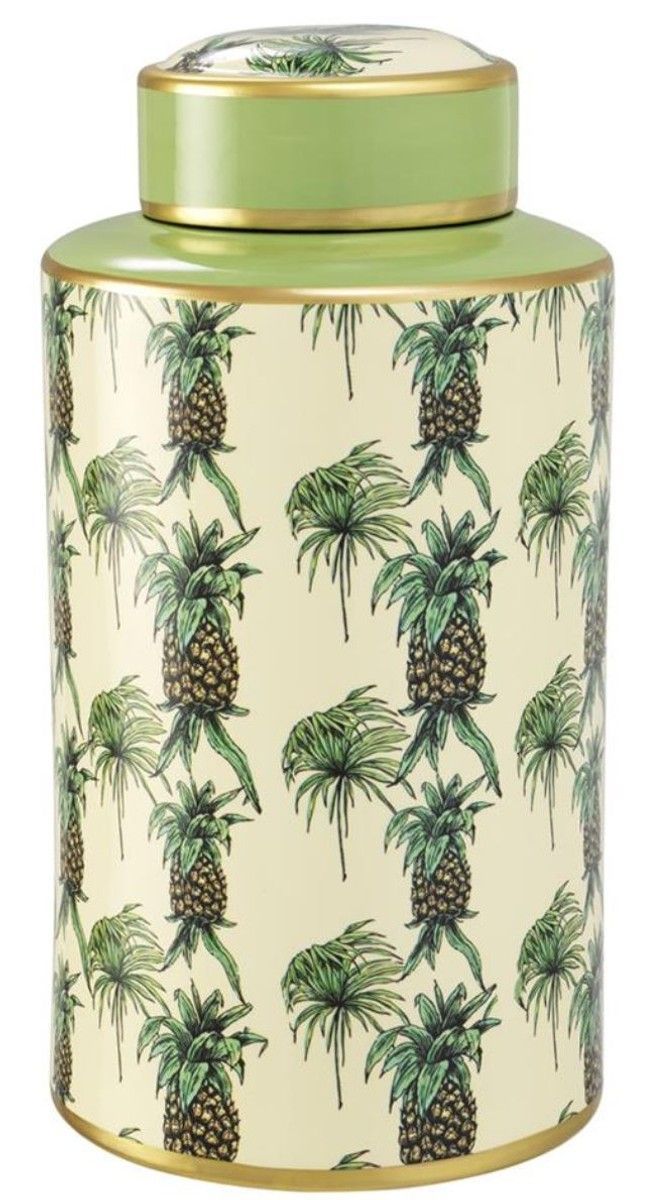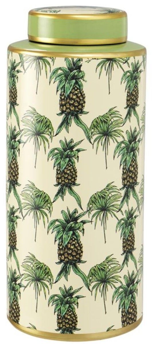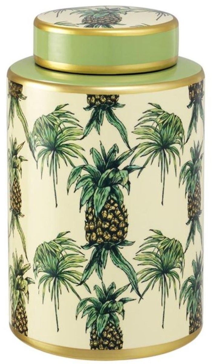 Casa Padrino Luxus Porzellan Dosen 3er Set Ananas Design Grün / Mehrfarbig - Luxus Qu