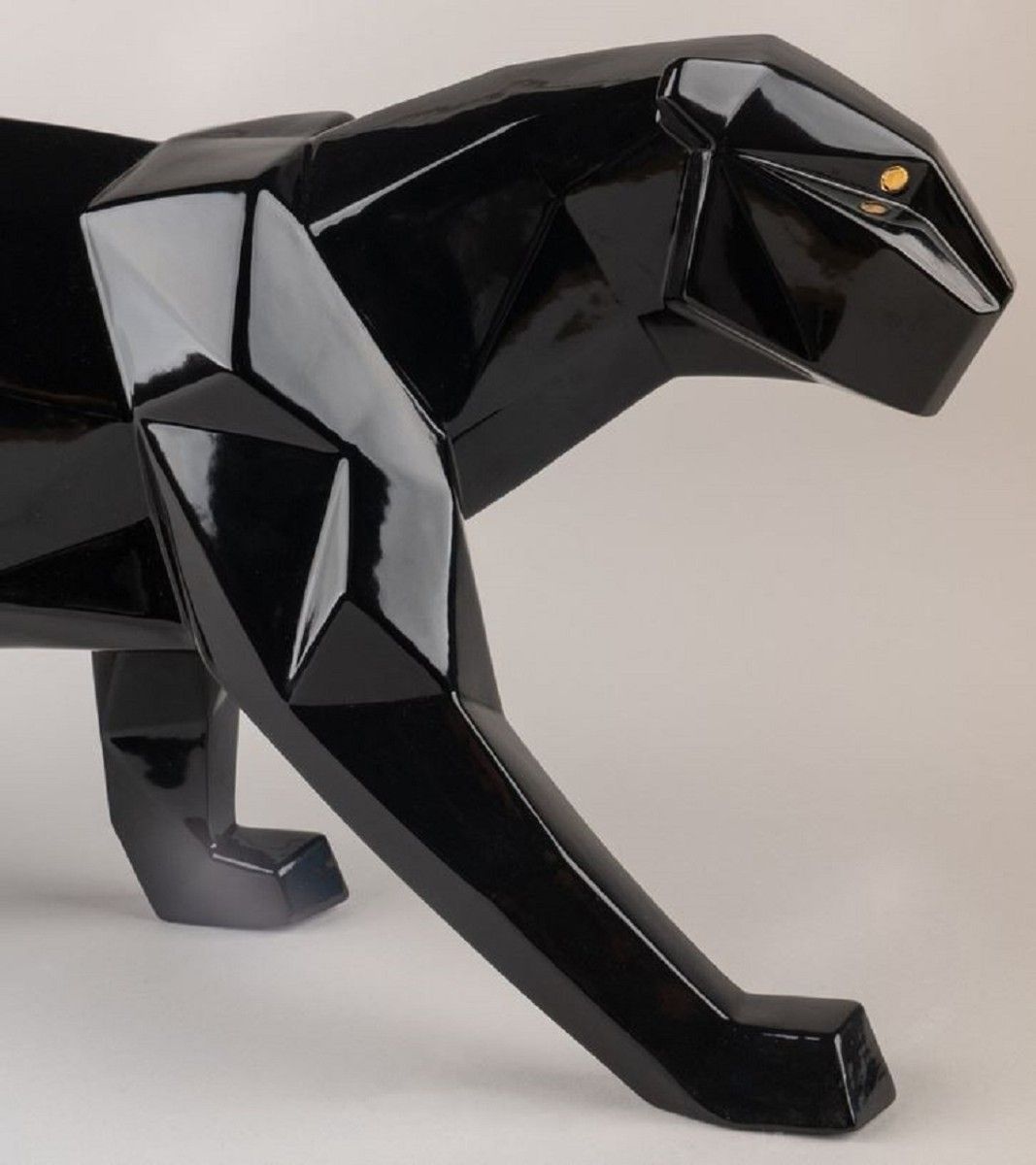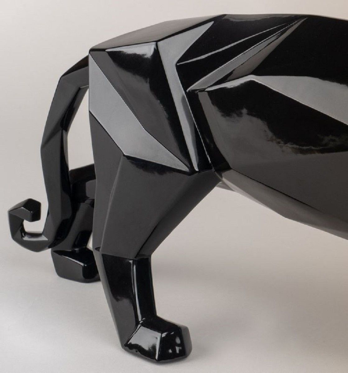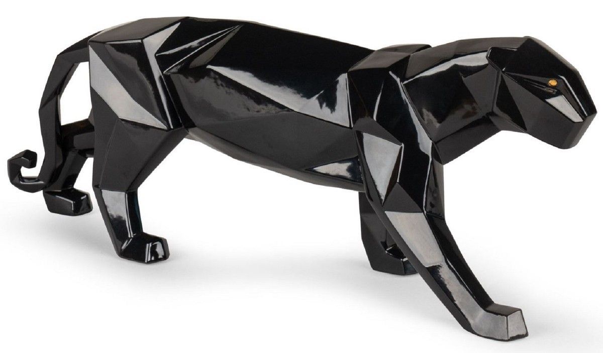 Casa Padrino Luxus Porzellan Panther Skulptur Schwarz glasiert 50 x 12 x H. 19 cm - H