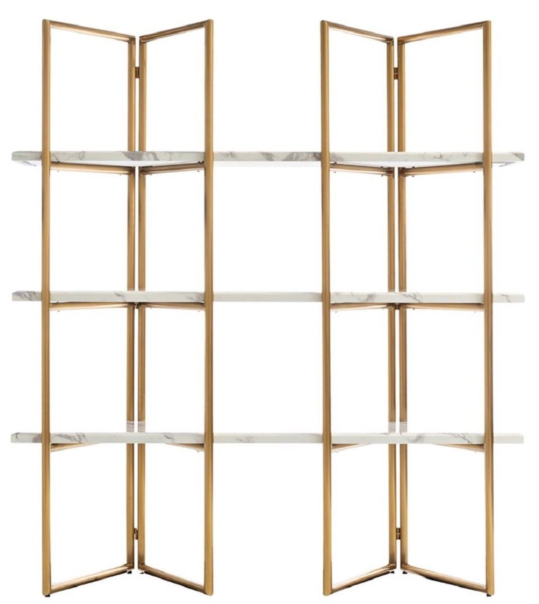Casa Padrino Luxus Regalschrank Gold / Weiß 165 x 46,5 x H. 185 cm - Edelstahl Schran