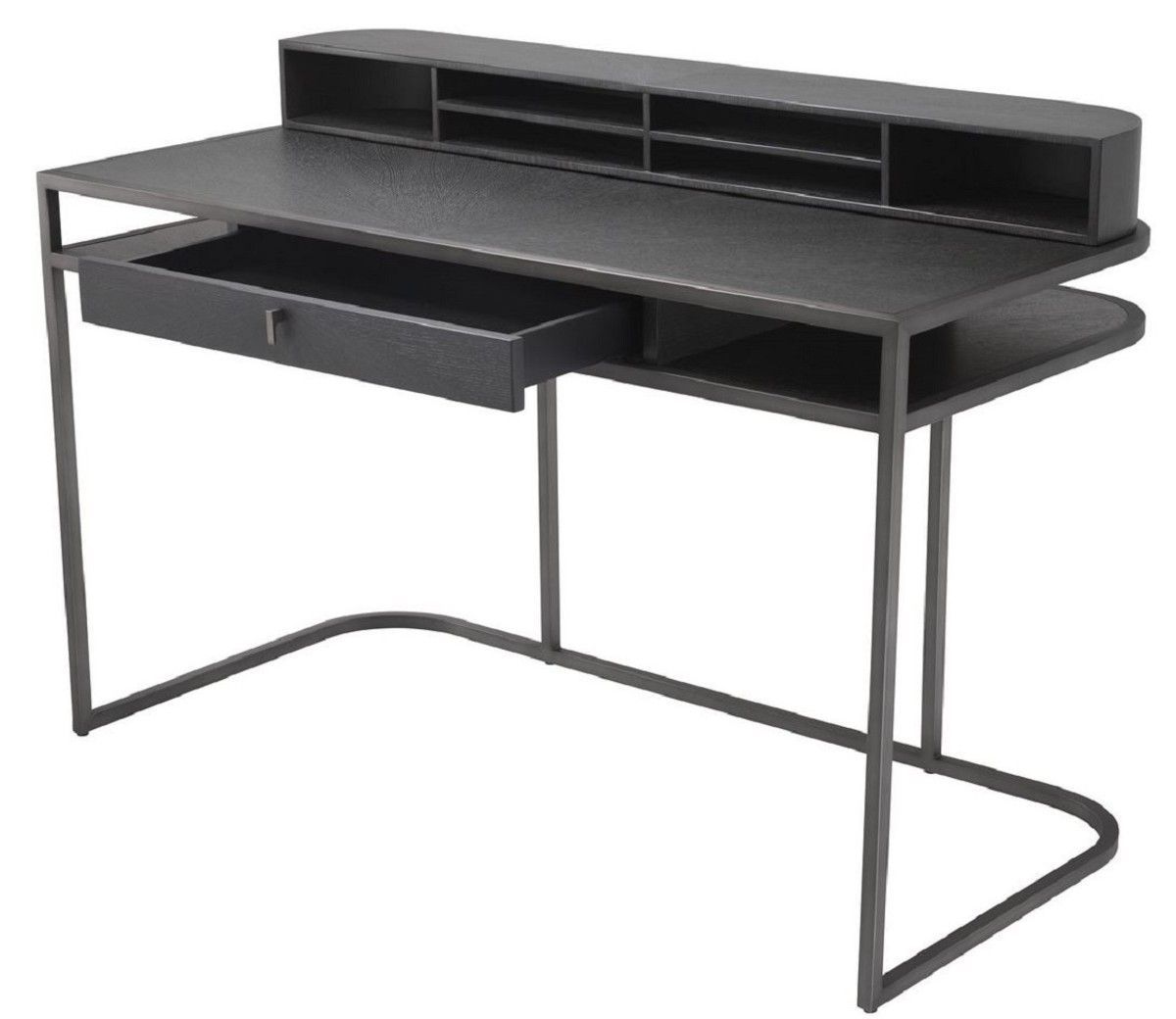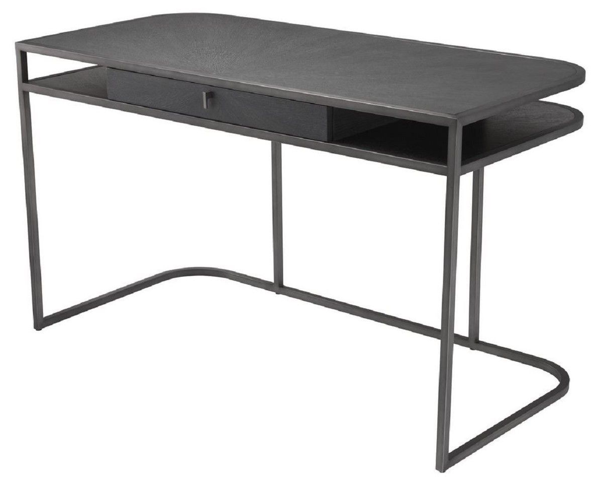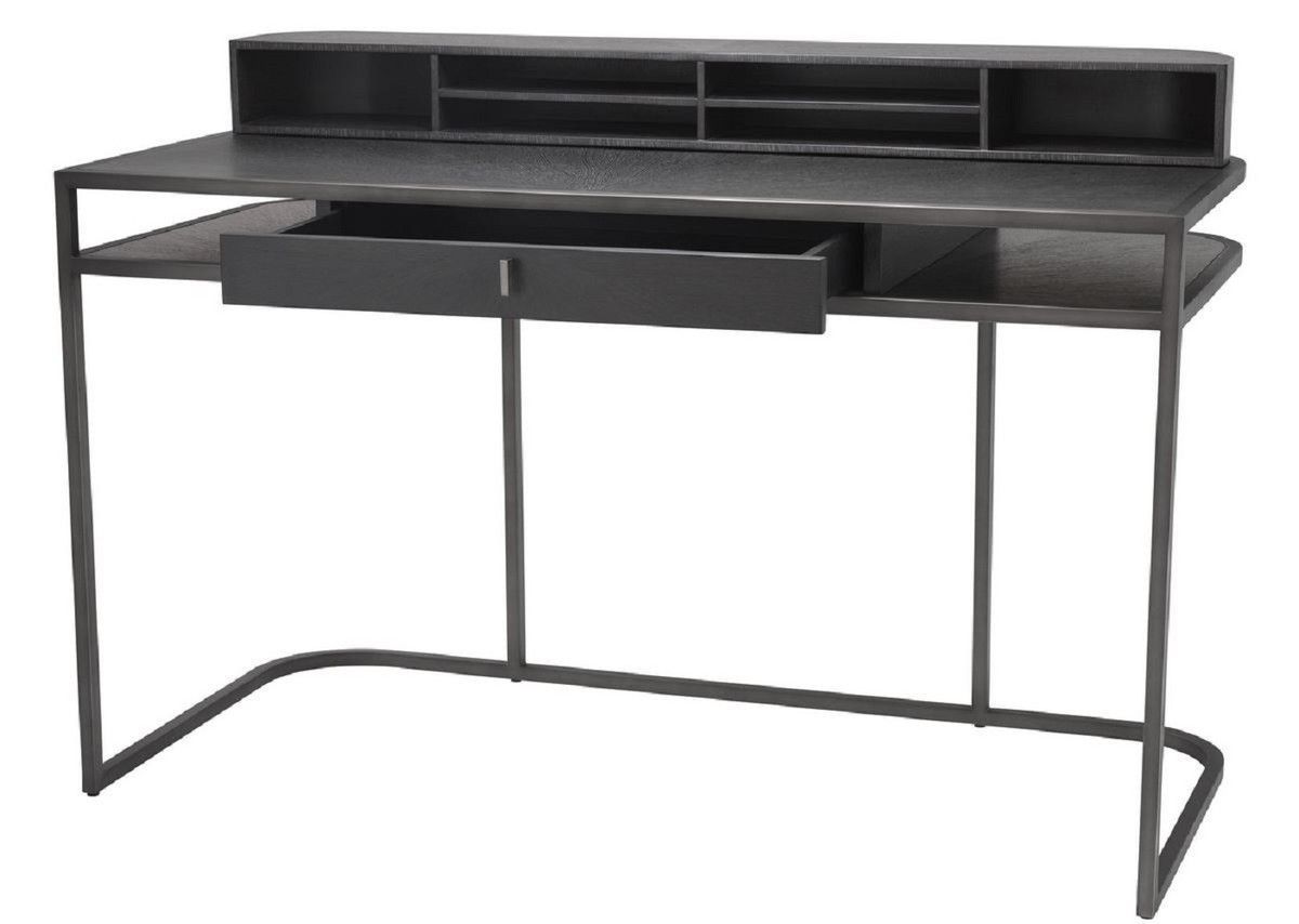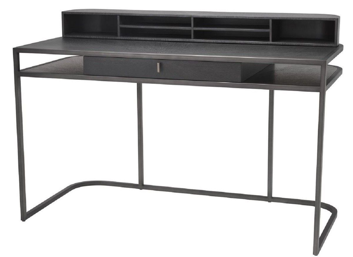 Casa Padrino Luxus Schreibtisch mit Schublade und abnehmbaren Regalaufsatz Dunkelgrau