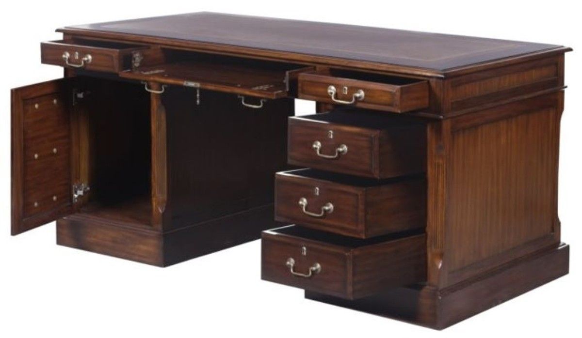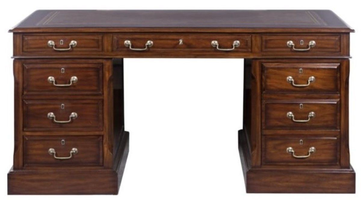 Casa Padrino Luxus Schreibtisch mit Tür und 6 Schubladen Braun / Silber 160 x 80 x H
