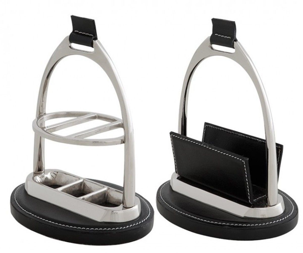 Casa Padrino Luxus Schreibtisch Set Briefständer und Kugelschreiber Ständer Echtleder