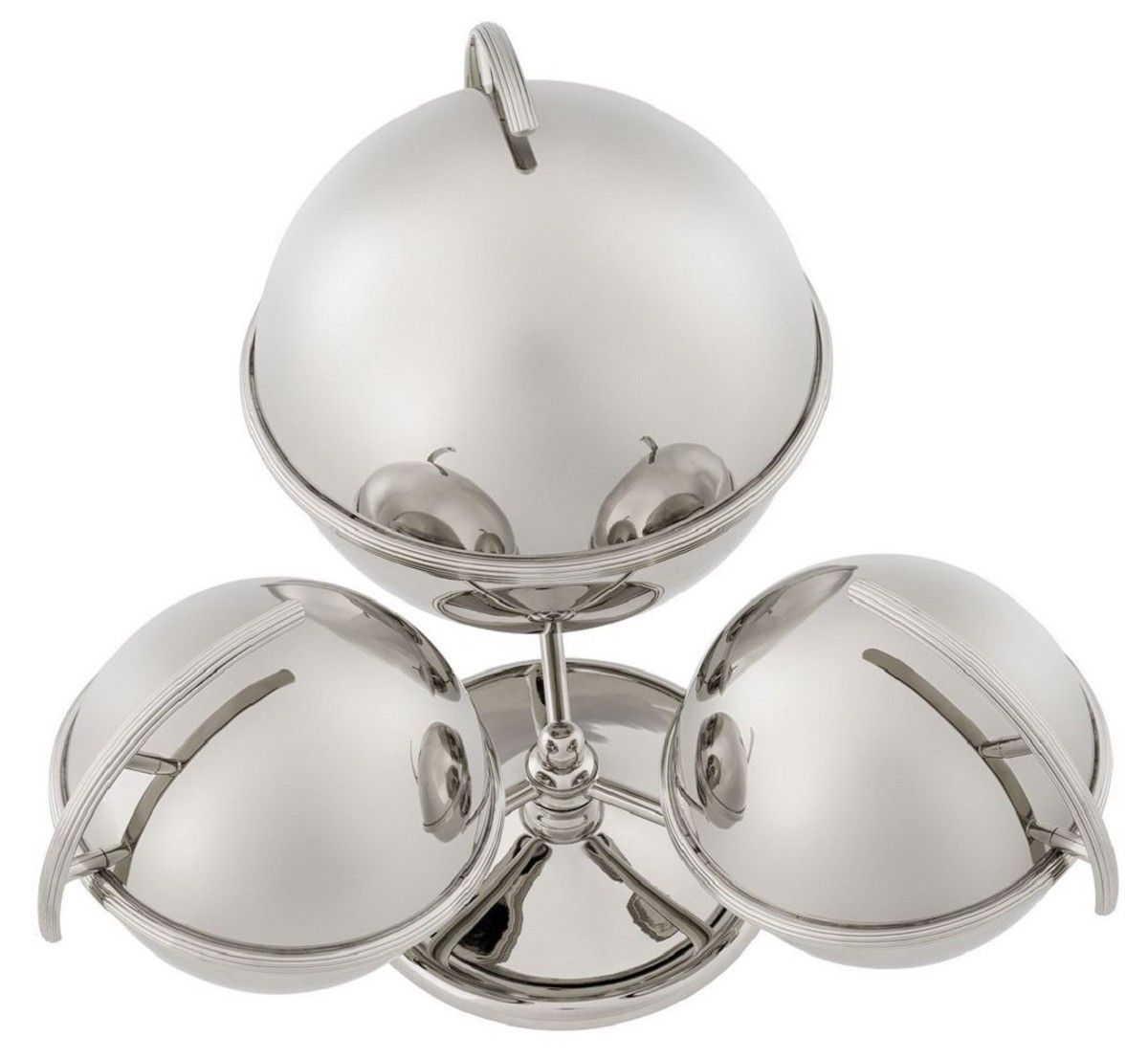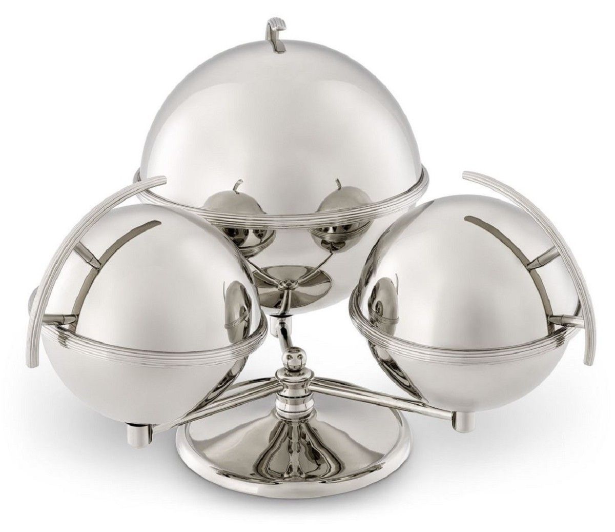 Casa Padrino Luxus Servierschüssel 3er Set mit Ständer Silber 35,5 x 32,5 x H. 23,5