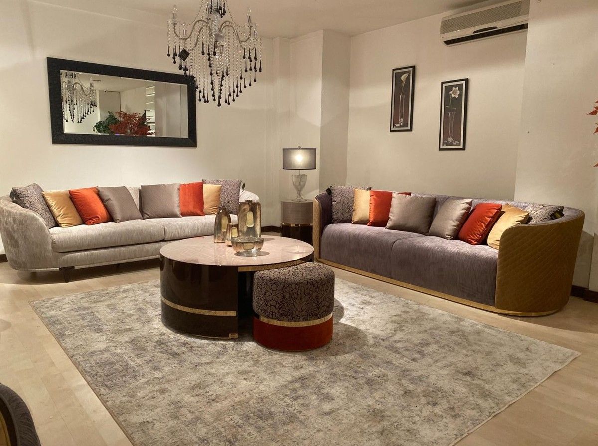 Casa Padrino Luxus Sofa Silber / Dunkelbraun - Luxus Wohnzimmer Sofa - Luxus Hotel So