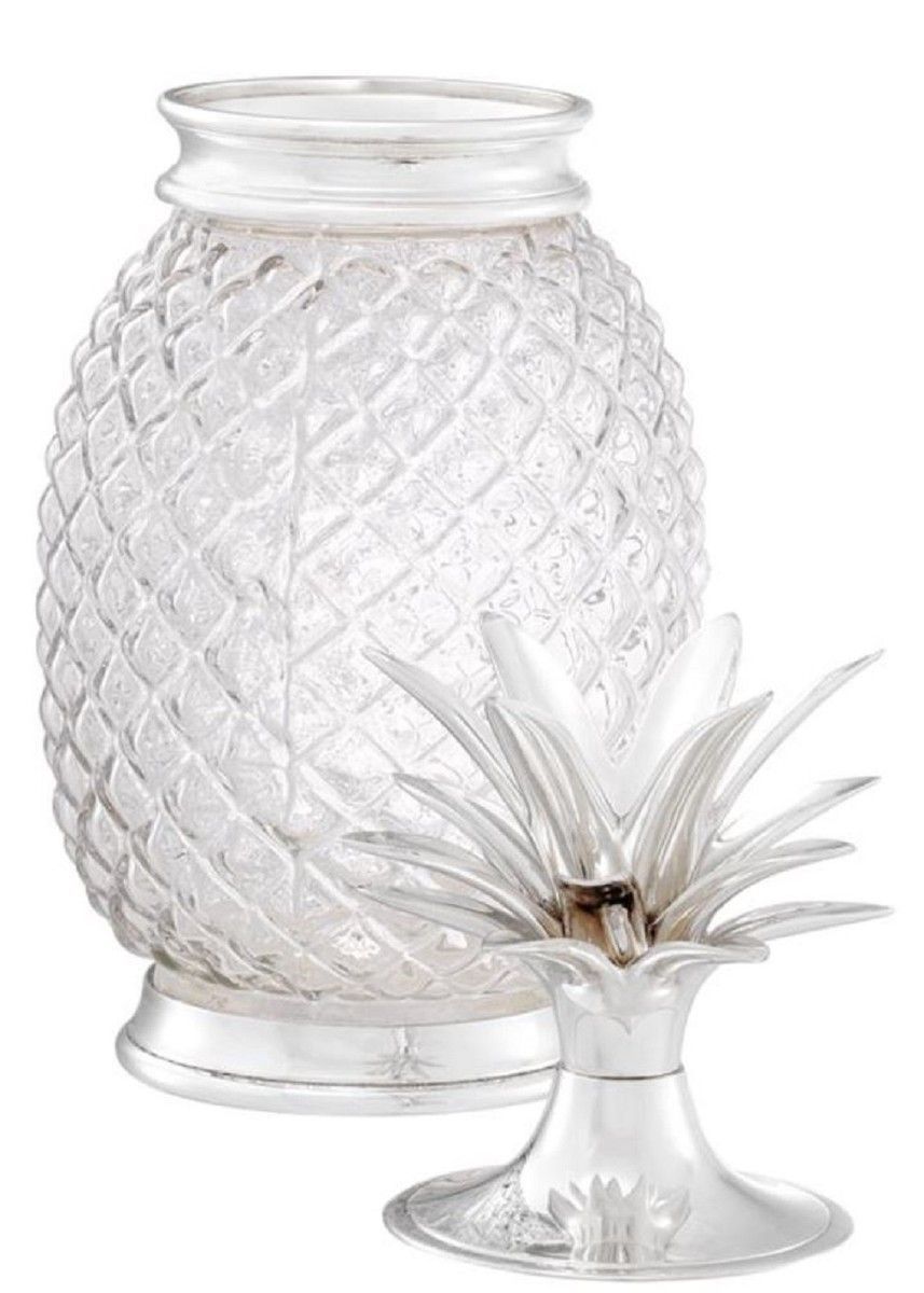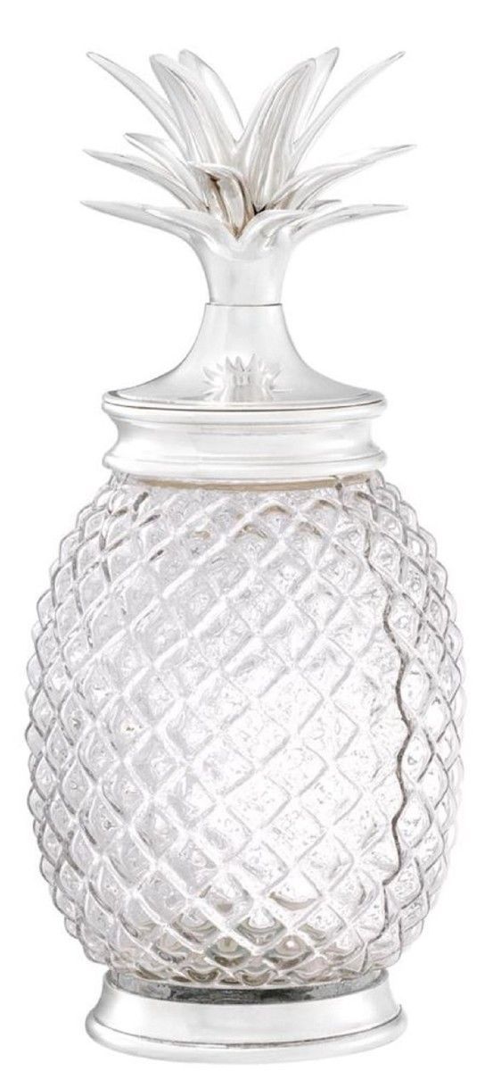 Casa Padrino Luxus Vorratsglas mit Deckel im Ananas Design Silber Ø 16,5 x H. 36,5 cm