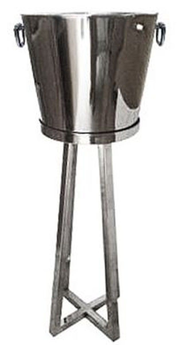 Casa Padrino Luxus Weinkühlerständer mit Ring Silber Messing H 80 cm, Durchmesser 35