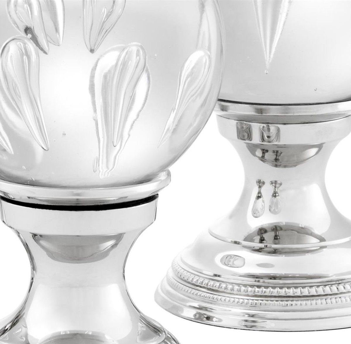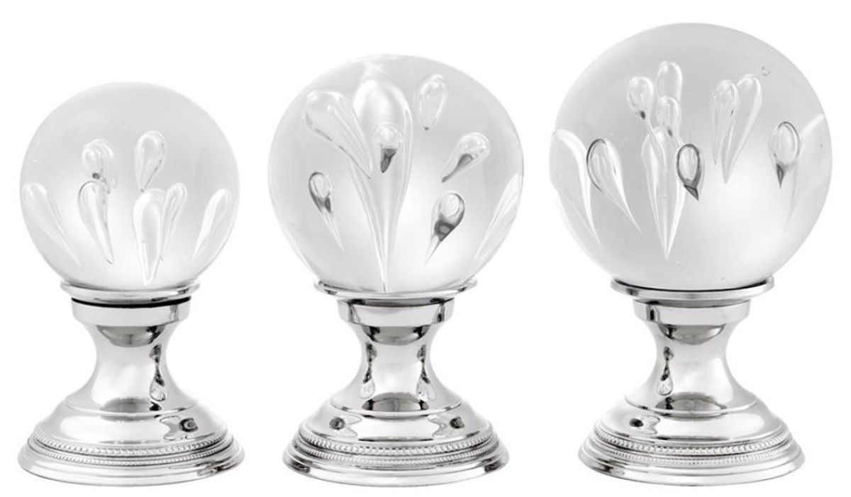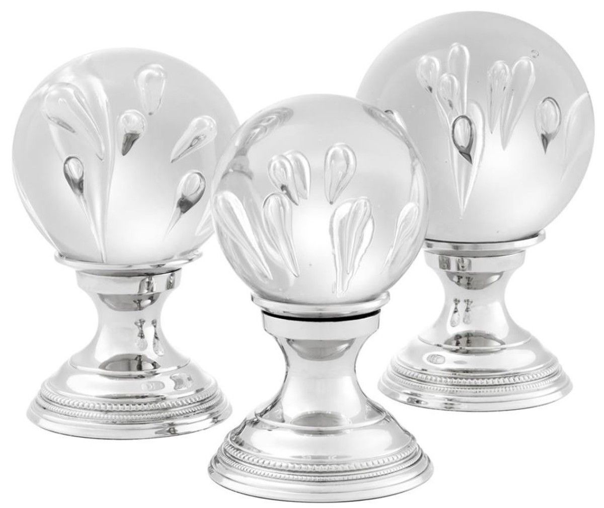 Casa Padrino Luxus Wohnzimmer Deko 3er Set Silber - Glas Kugeln mit Messing Sockel