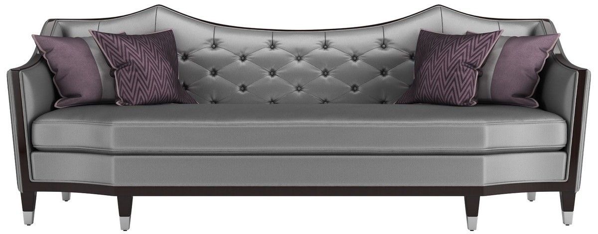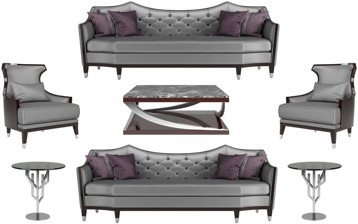 Casa Padrino Luxus Wohnzimmer Set Silber / Schwarz / Dunkelbraun - 2 Sofas & 2 Sessel