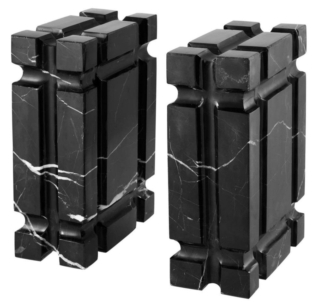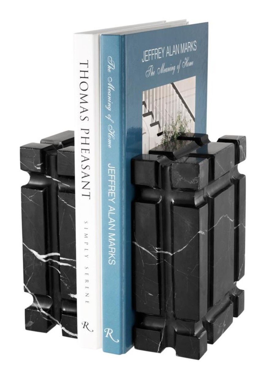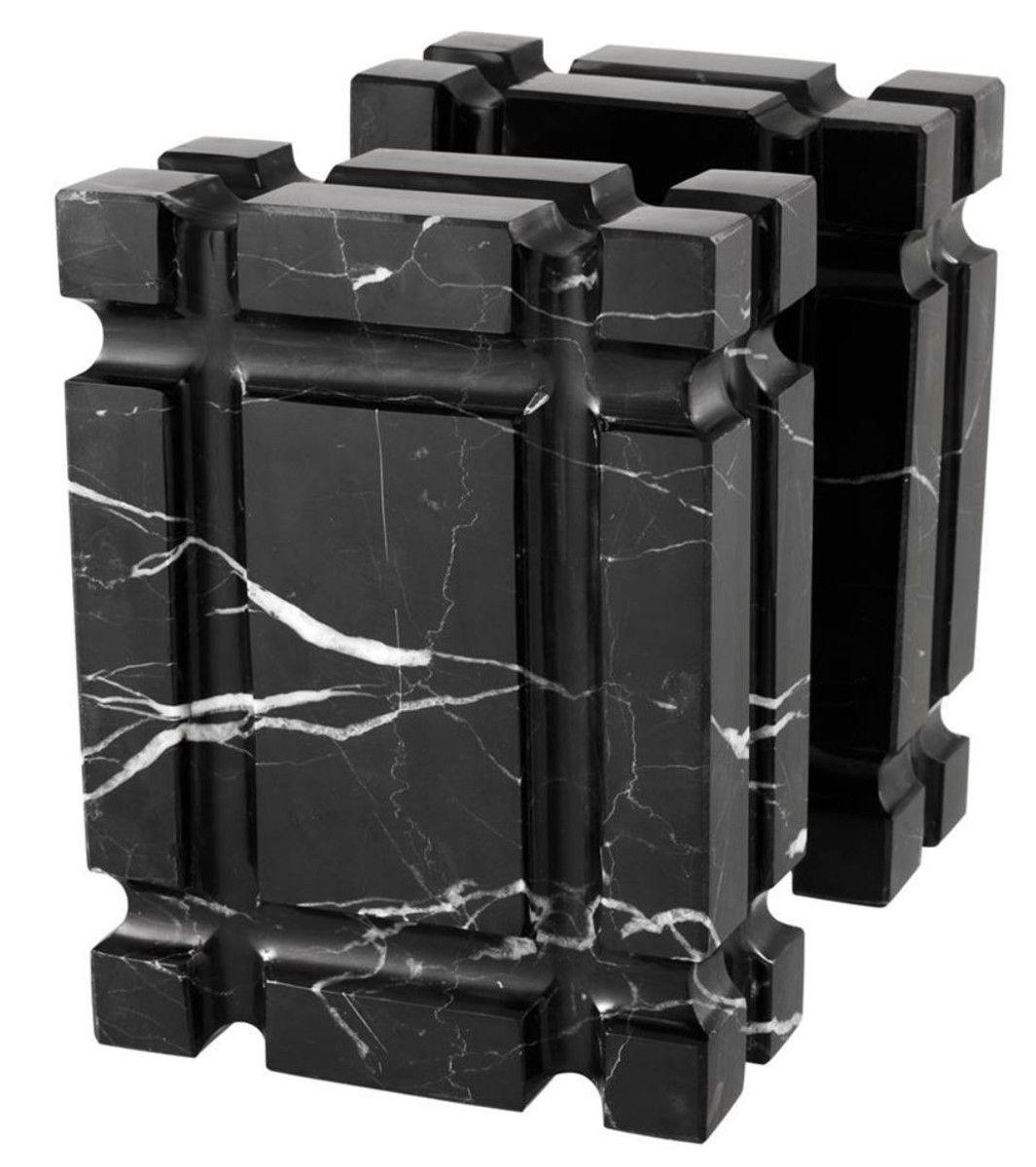 Casa Padrino Marmor Buchstützen 2er Set Schwarz - Luxus Wohnzimmer Accessoires