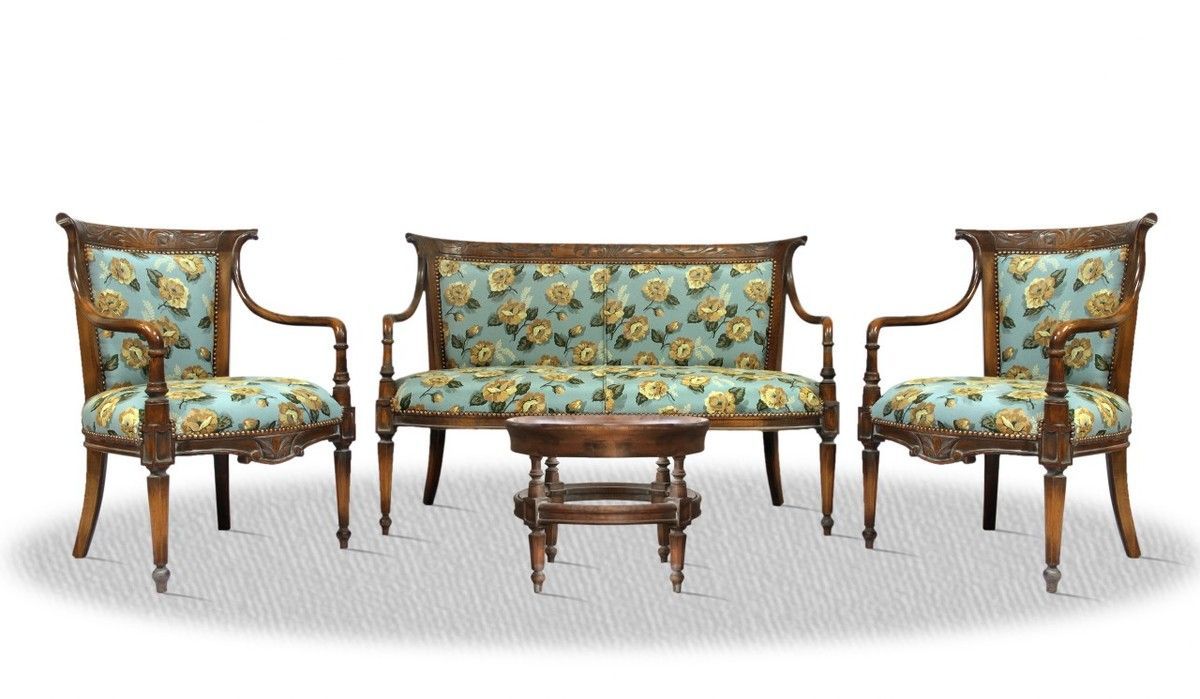 Casa Padrino Salon Set antik braun blau mit Blumenmuster - Luxus Kollektion