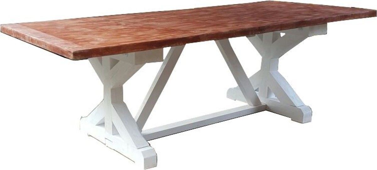 Casa Padrino Shabby Chic Esstisch Weiß Antik Stil / Holzfarben 240 x 100 cm - Landhau