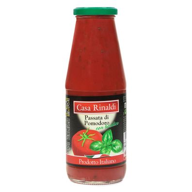 • Casa Rinaldi pasteurisierte Tomaten in der Glasflasche 690g