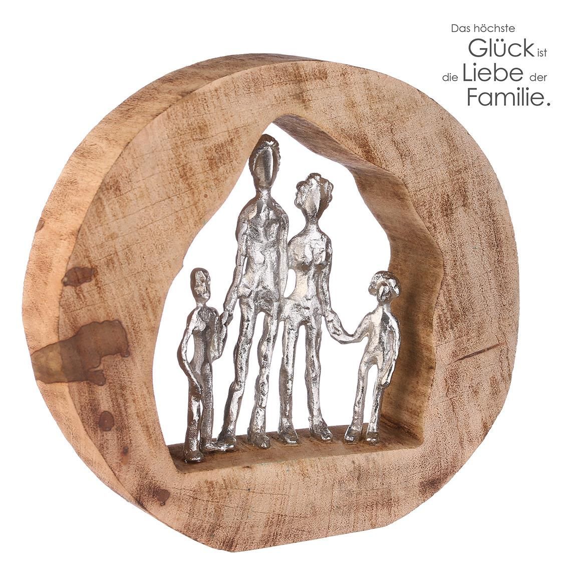 Gilde Casablanca Skulptur Familie Mangoholz Aluminium in silber
