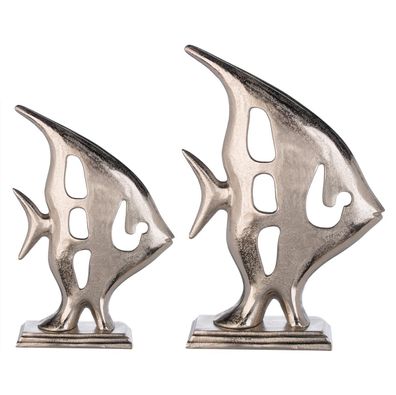 • Casablanca Skulptur Fisch "Aki" Aluminium vernickelt silberfarben Antikfinish auf