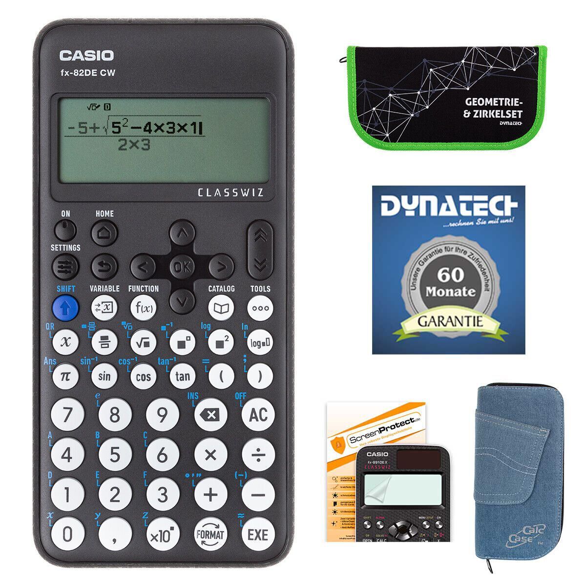 Casio FX-82 DE CW mit Jeans-Tasche, Zirkelset grén, Displayfolie und Garantie