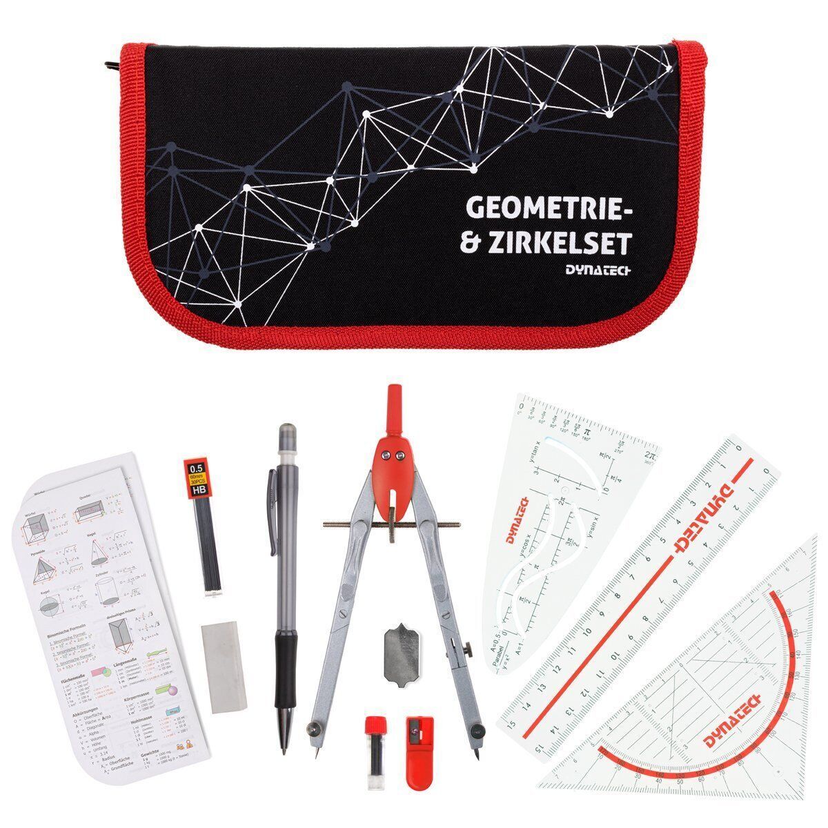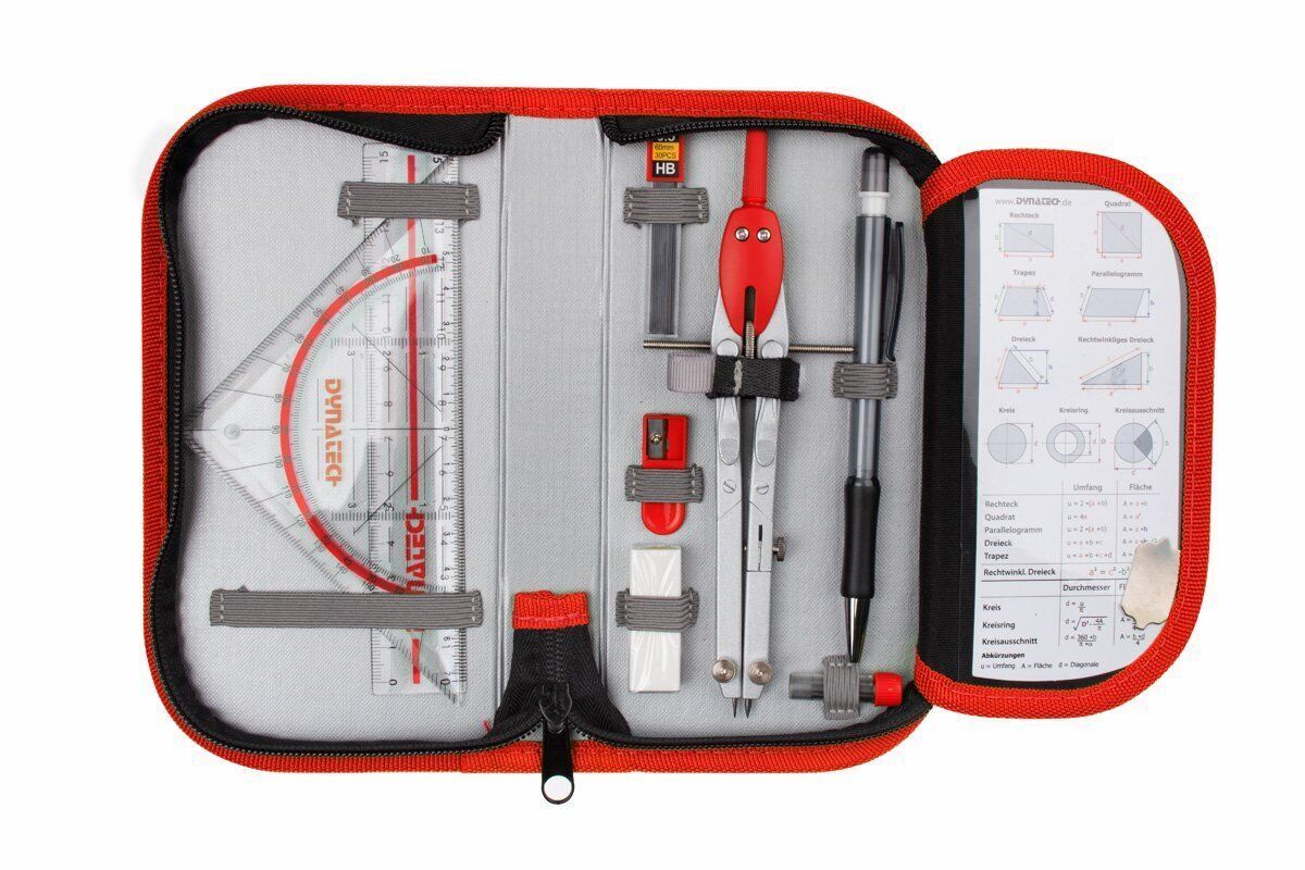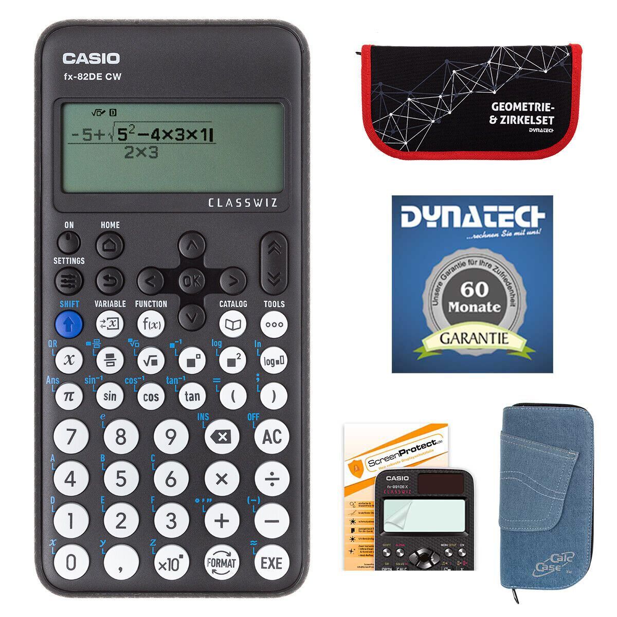 Casio FX-82 DE CW mit Jeans-Tasche, Zirkelset rot, Displayfolie und Garantie