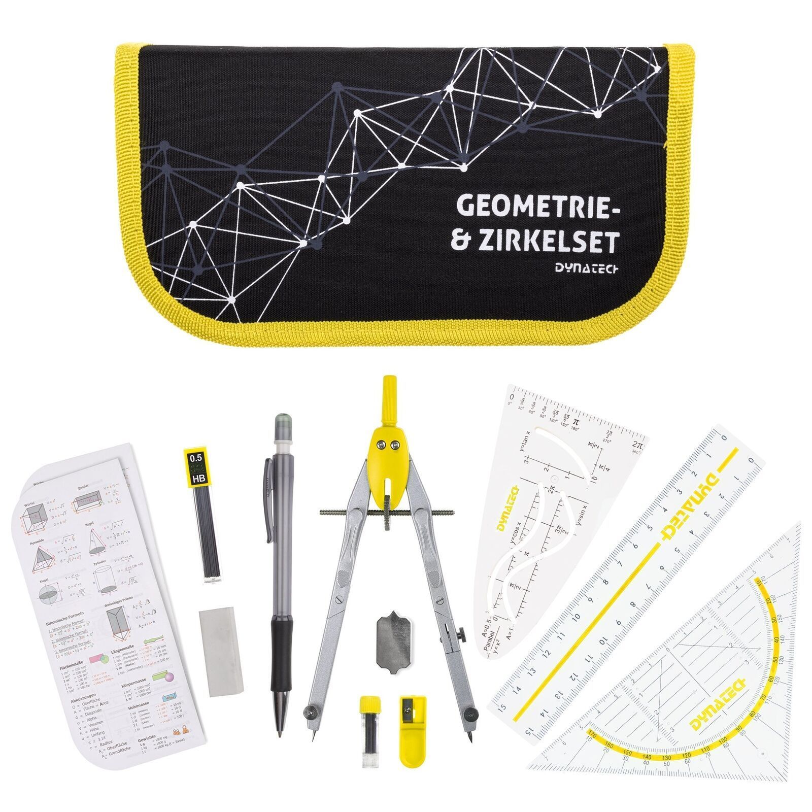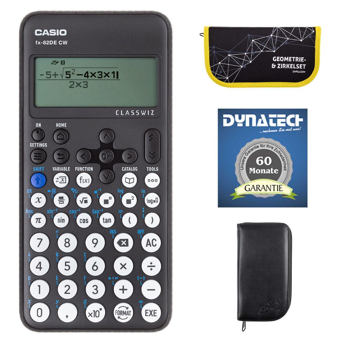 Casio FX-82 DE CW mit schwarzer Tasche, Zirkelset gelb + Garantieverlängerung
