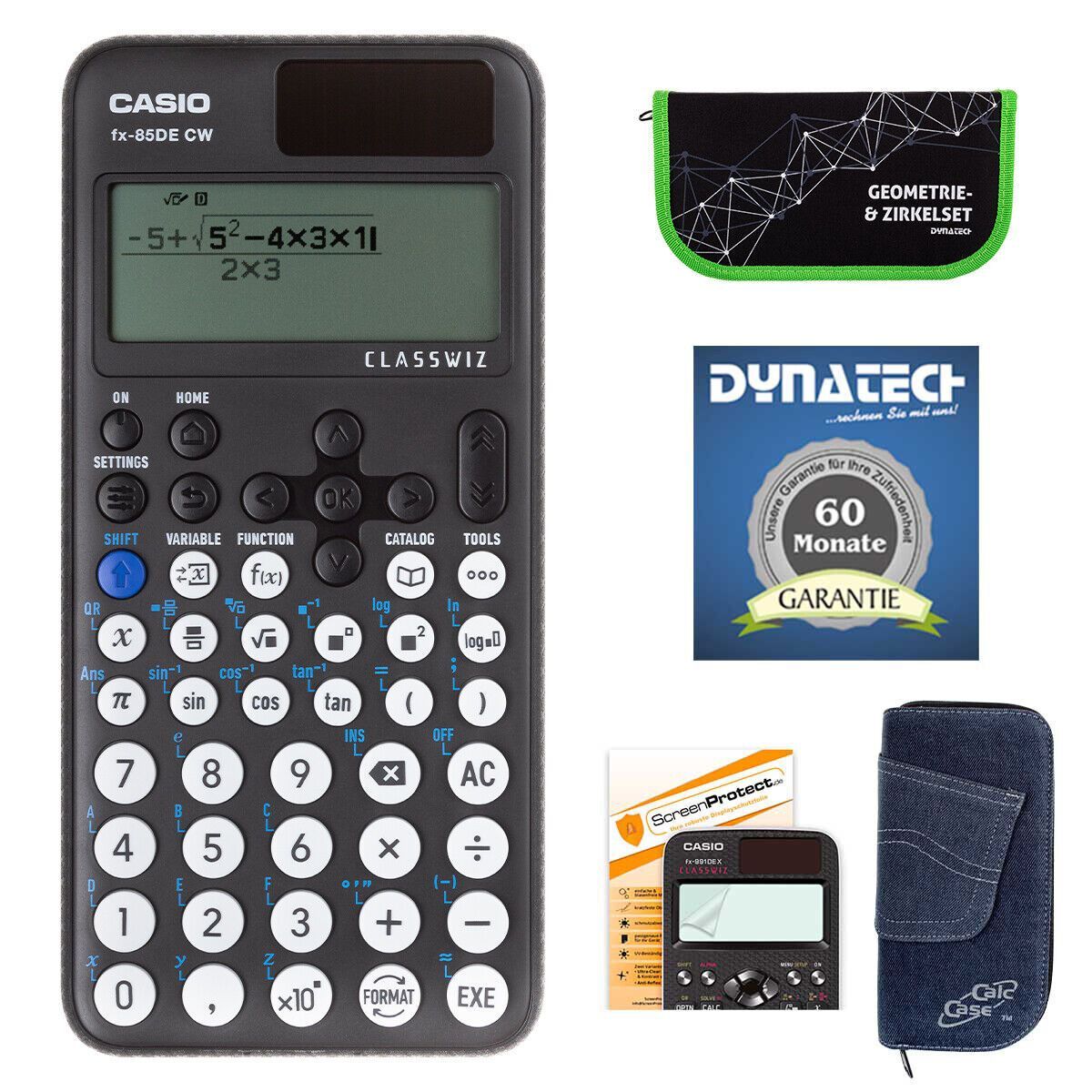 Casio FX-85 DE CW + Jeans-Tasche dunkelblau, Zirkelset grén, chutzfolie, arantie