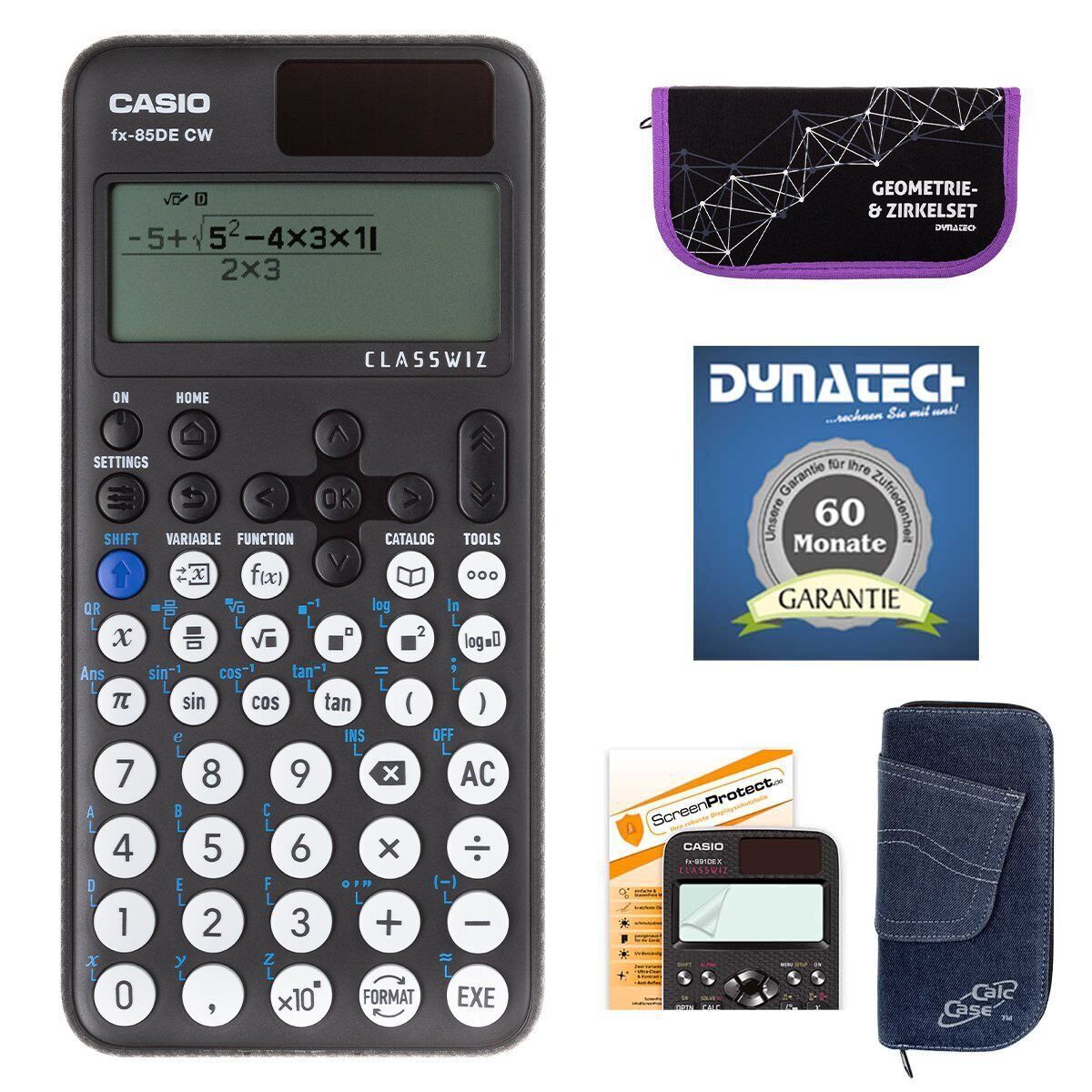 Casio FX-85 DE CW + Jeans-Tasche dunkelblau, Zirkelset lila, chutzfolie, arantie