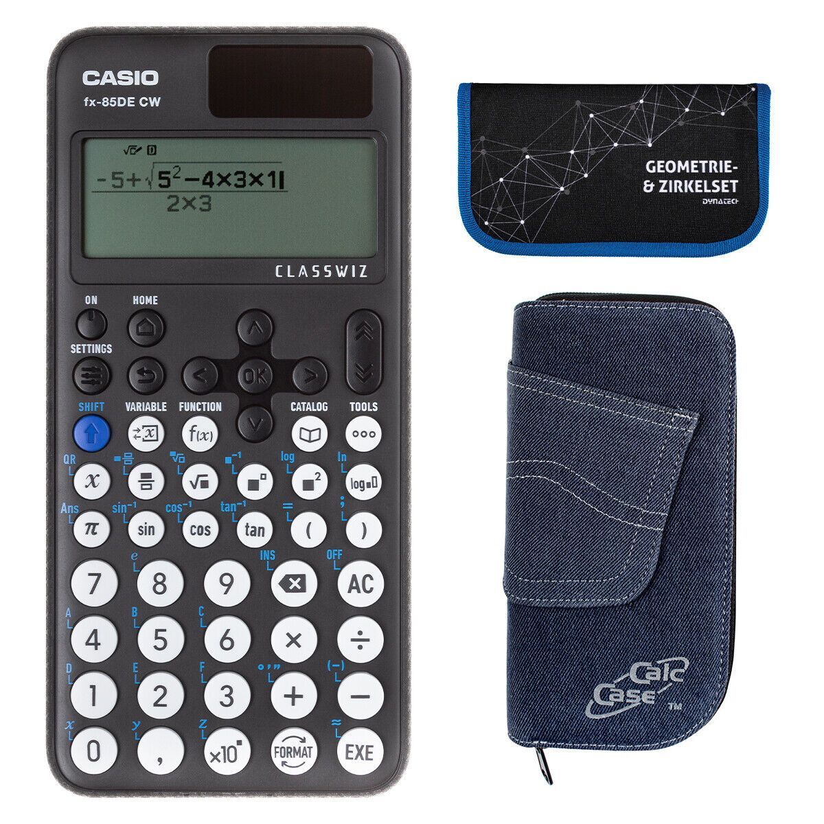 Casio FX-85 DE CW mit Jeans-Tasche dunkelblau und Zirkelset blau