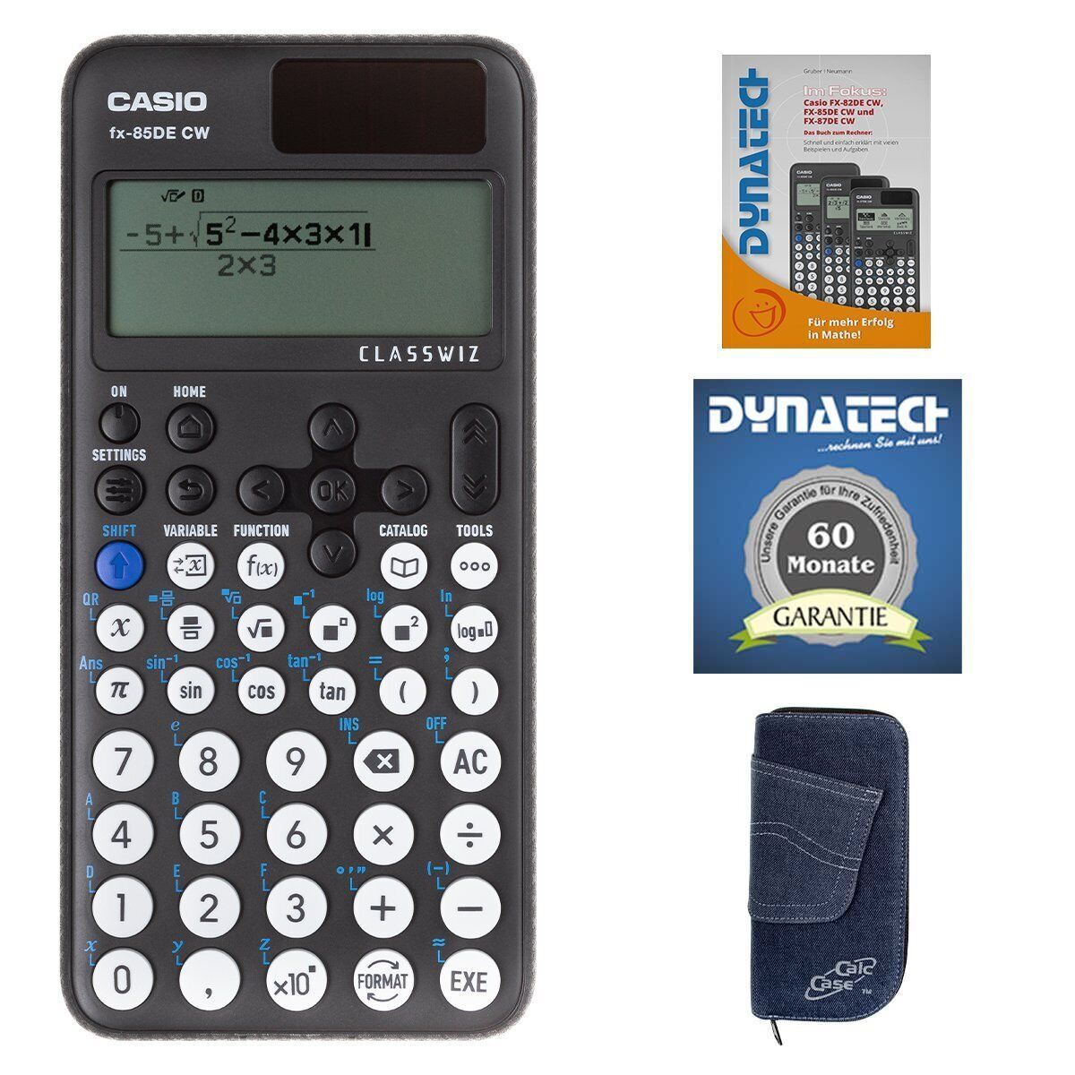 Casio FX-85 DE CW mit Jeans-Tasche hellblau, Arbeitsbuch und Garantie