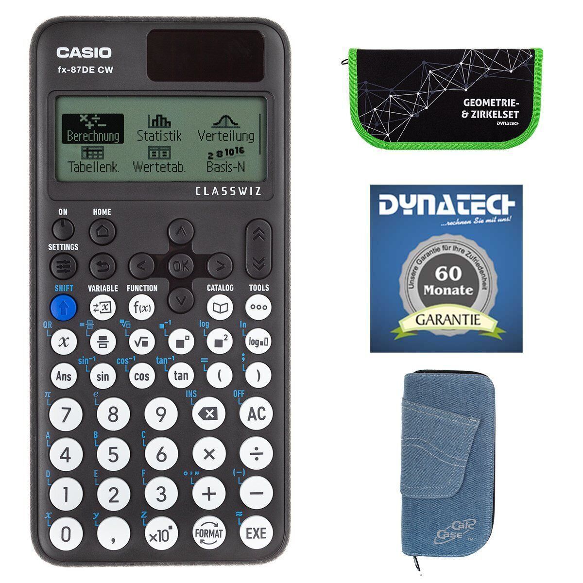 Casio FX-87 DE CW mit Jeans-Tasche hellblau, Zirkelset grén und Garantie