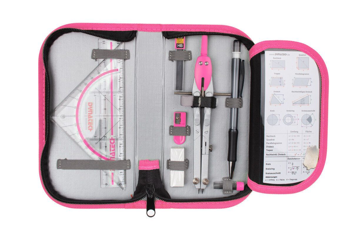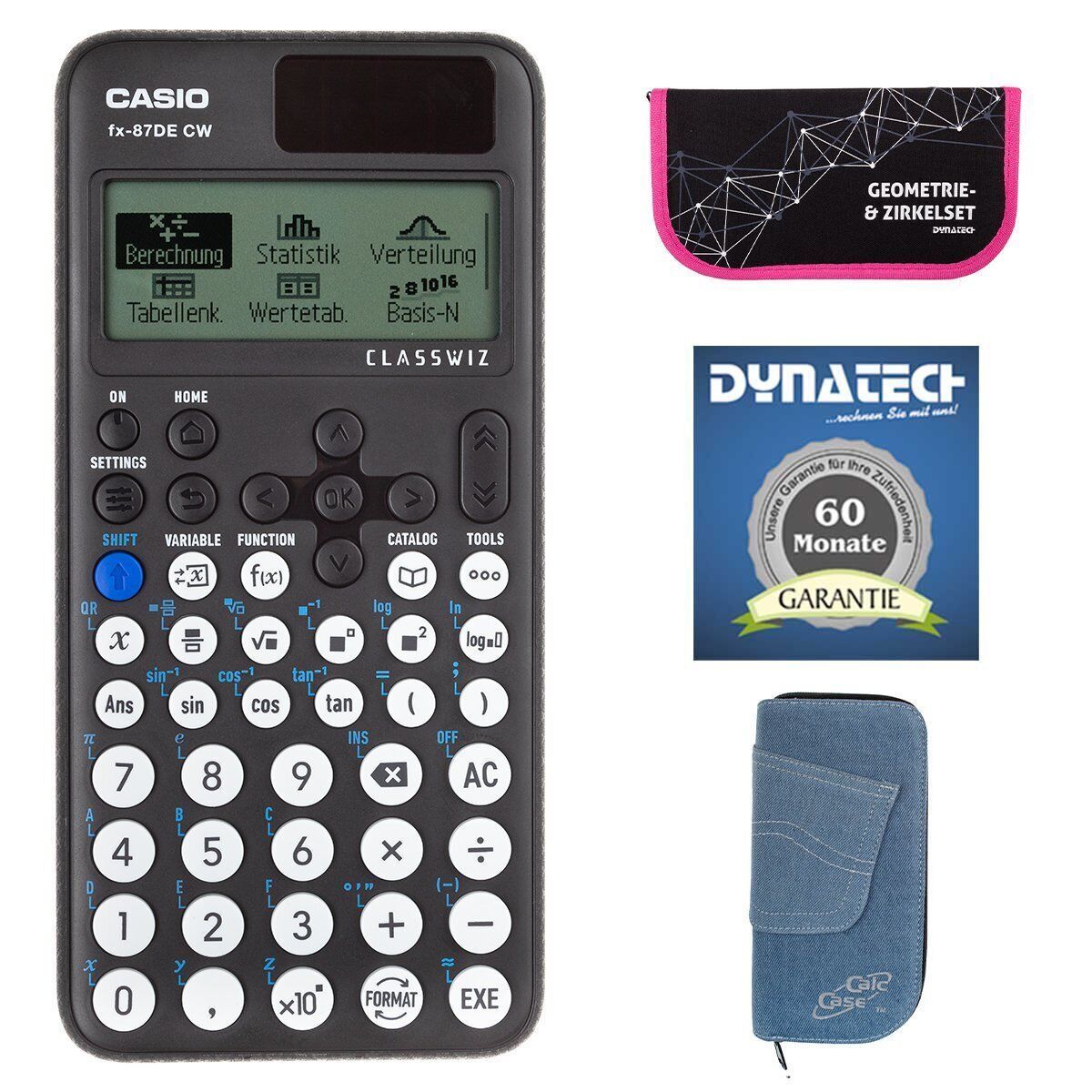 Casio FX-87 DE CW mit Jeans-Tasche hellblau, Zirkelset pink und Garantie