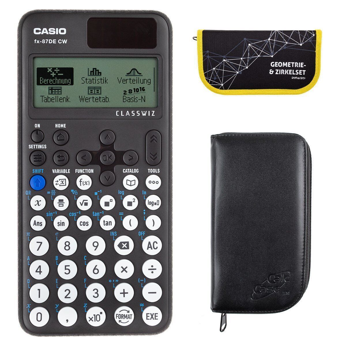 Casio FX-87 DE CW mit schwarzer Tasche und Zirkelset gelb