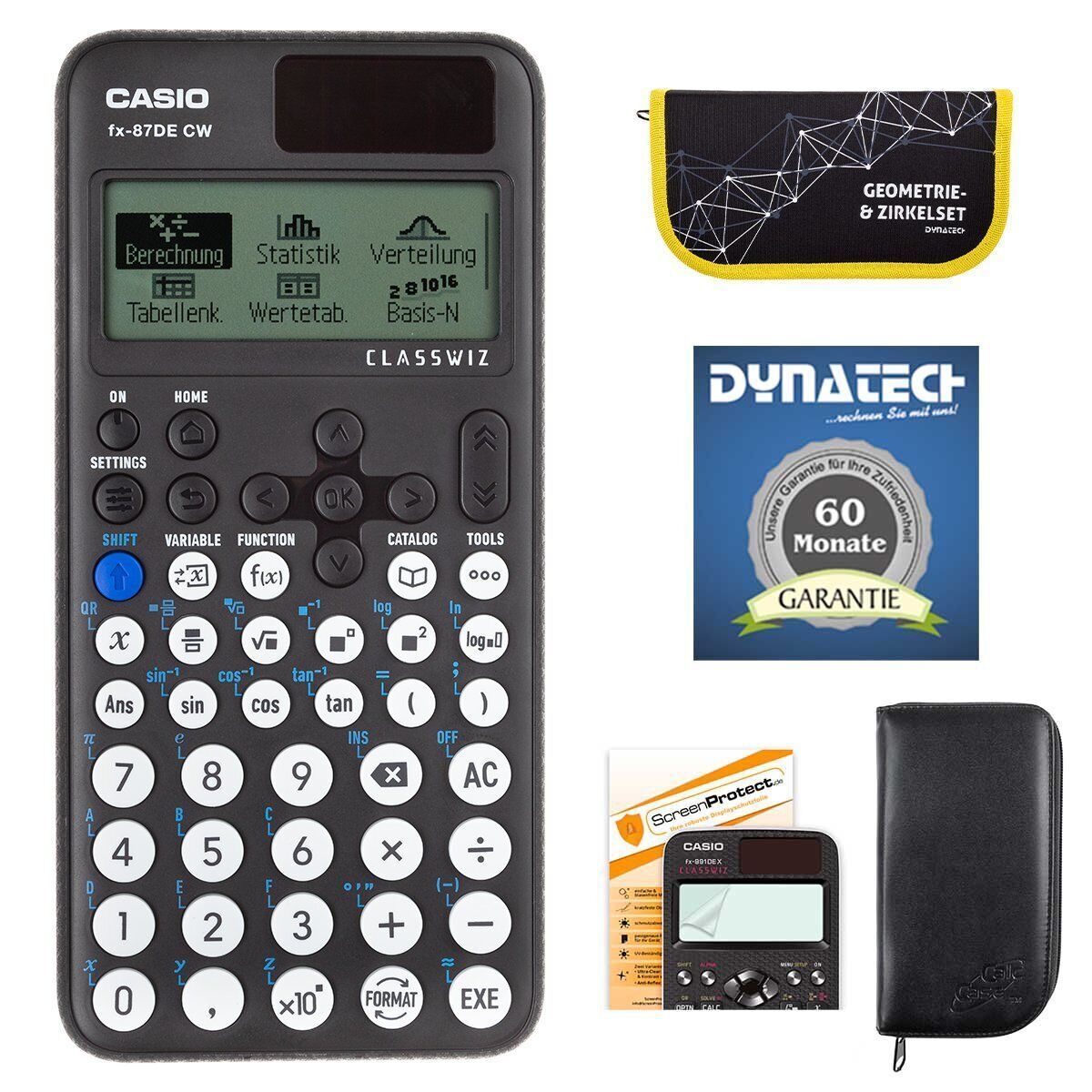 Casio FX-87 DE CW mit schwarzer Tasche, Zirkelset gelb, Schutzfolie, Garantie