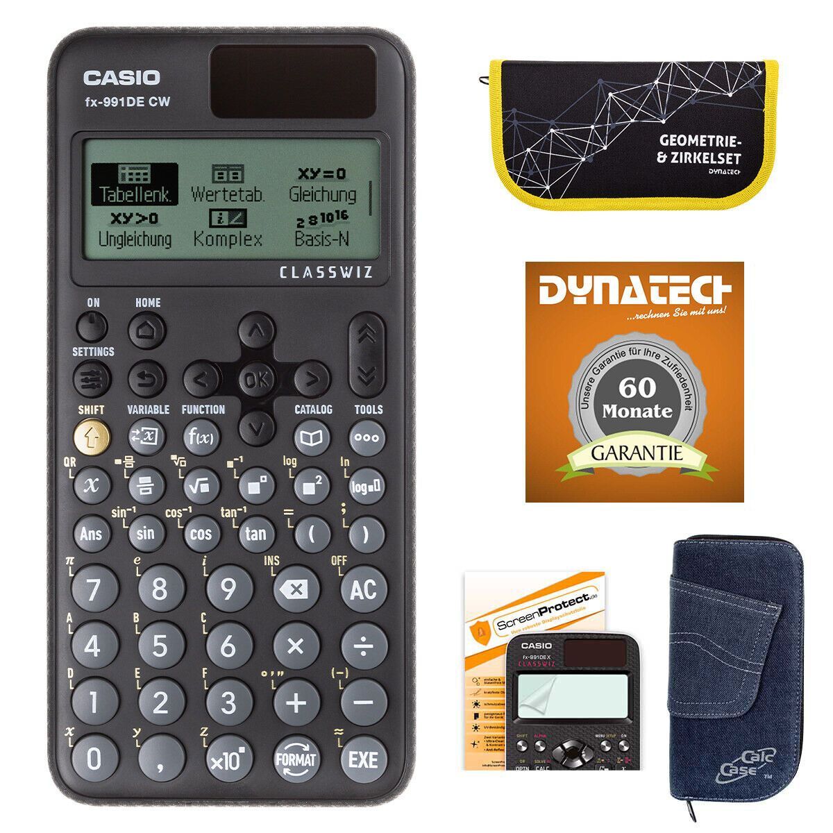 Casio FX-991 DE CW + Jeans-Tasche dunkelblau, Zirkelset gelb, Folie, Garantie