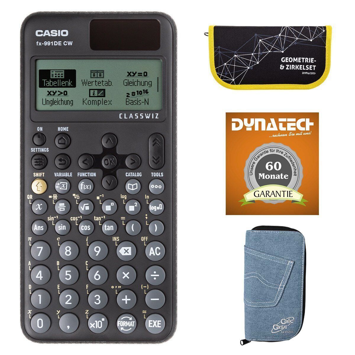 Casio FX-991 DE CW mit Jeans-Tasche hellblau, Zirkelset gelb und Garantie