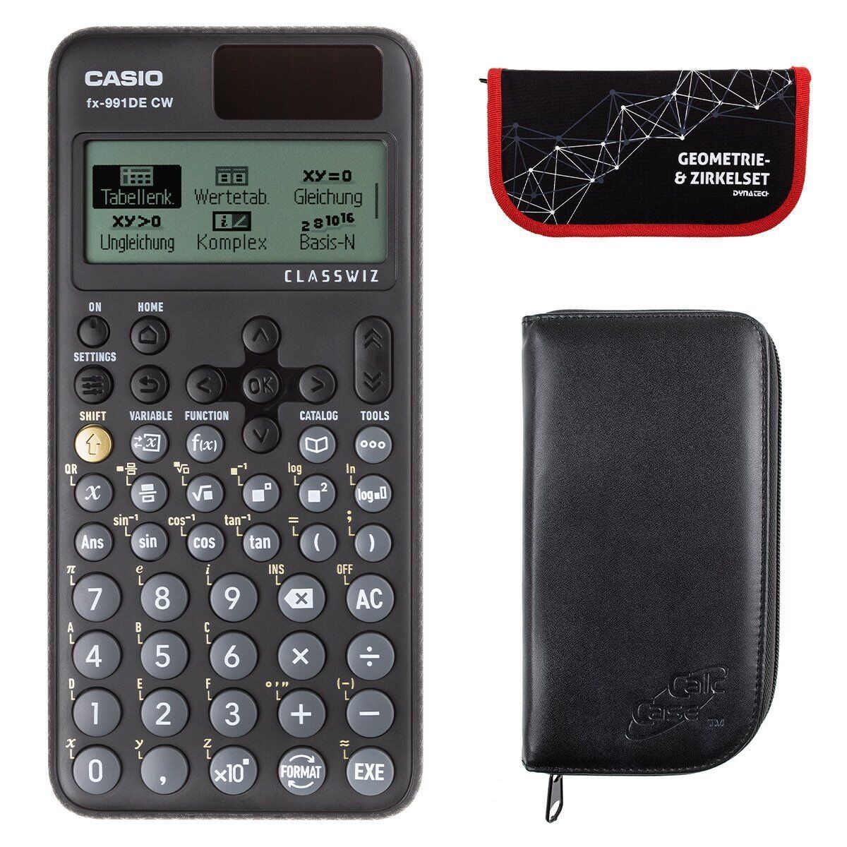 Casio FX-991 DE CW mit schwarzer Tasche und Zirkelset rot
