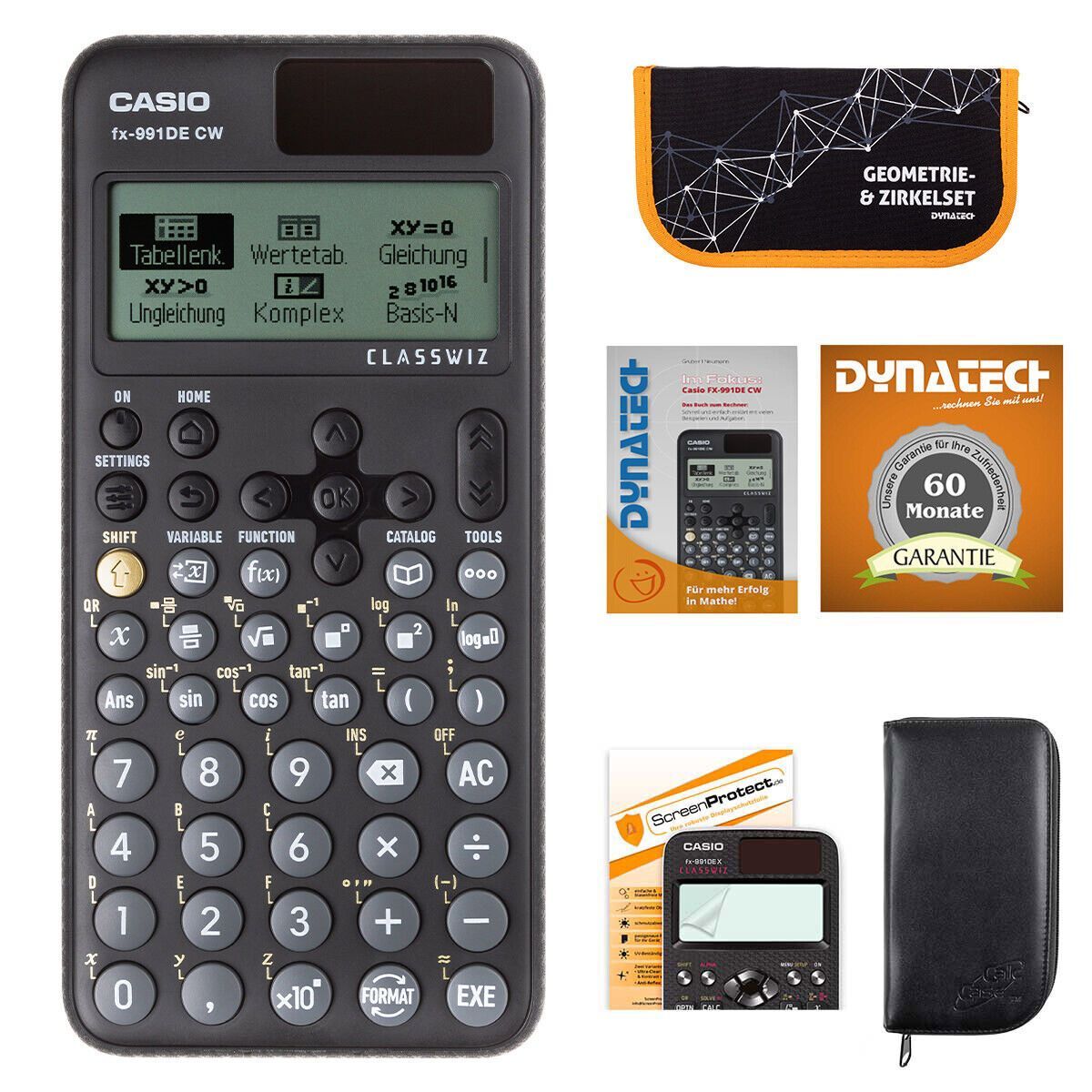 Casio FX-991 DE CW mit schwarzer Tasche, Zirkelset orange, olie, uch, arantie